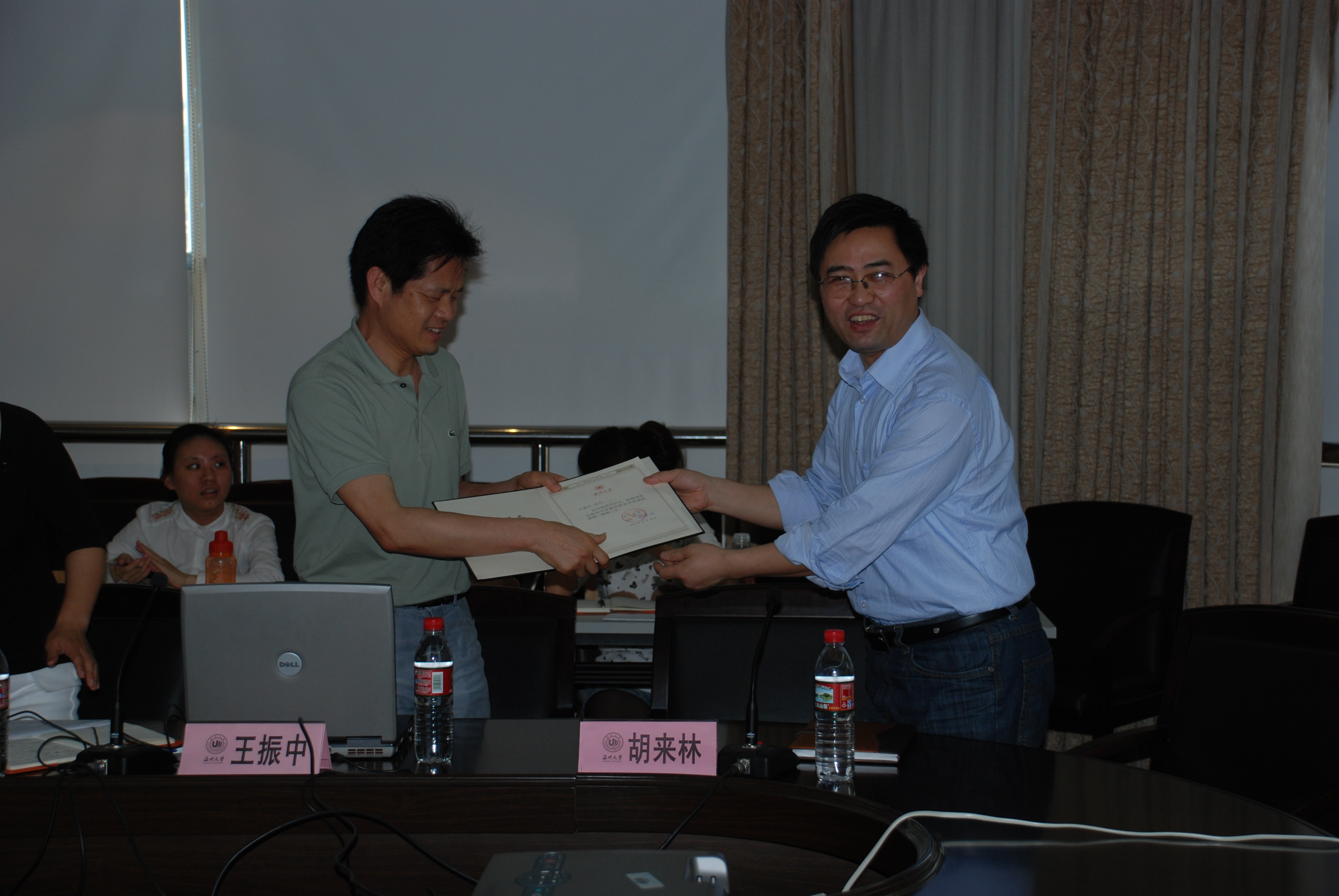 2010年5月19日14时,温州市教师教育院王振中院长受邀在太阳集团tyc234cc北校区行政楼一楼125会议室为我校师生举行了一场题为“走向新课程的纵深——一个基层教育工作者眼中的课程改革”的讲座。讲座开始前,还举行了简短的敦聘仪式,太阳成集团tyc234cc胡来林院长向王振中院长递交了聘书,聘请王振中院长为我校兼职教授。