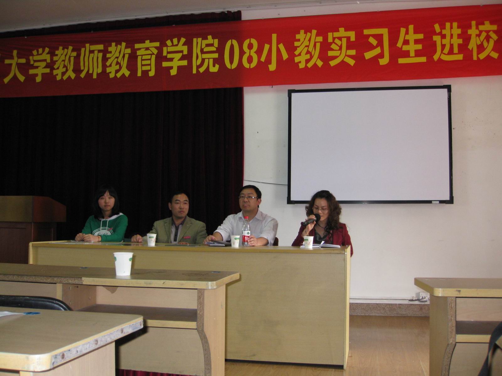 从5月10日起,我院08小教初等教育专业255名学生、07教育本36名学生开始实习,另外还有07教技31名开始见习。此次实习、见习工作学生多、任务重,学生总共分布在温州市和瑞安市的10所学校里,但在各系老师的通力合作和精心准备下,我们的实习、见习进校工作忙中有序。同时,我院领导胡伟国书记、张宝臣副院长、孙芙蓉副院长先后参加了其中5所学校的入校仪式,带去了学院对实习学校的感谢和对我们实习生的勉励。