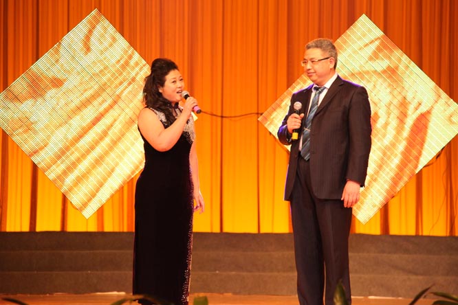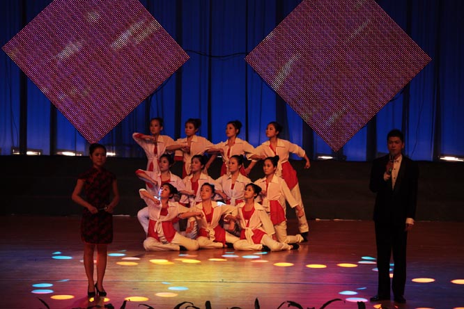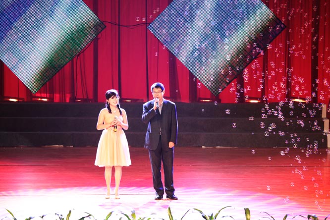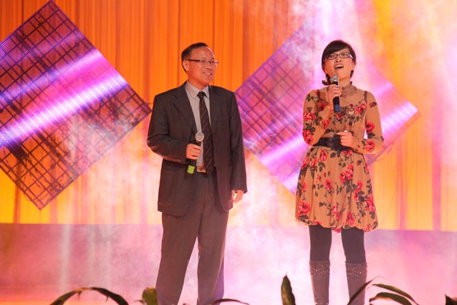 由全院领导联袂演出的《教工歌曲联唱》将晚会推向高潮。老师们激情的演唱,动听的歌声尽展学院教师别样的风采,精彩绝伦的演出引得全场尖叫声连连,成为整场晚会的最大亮点。