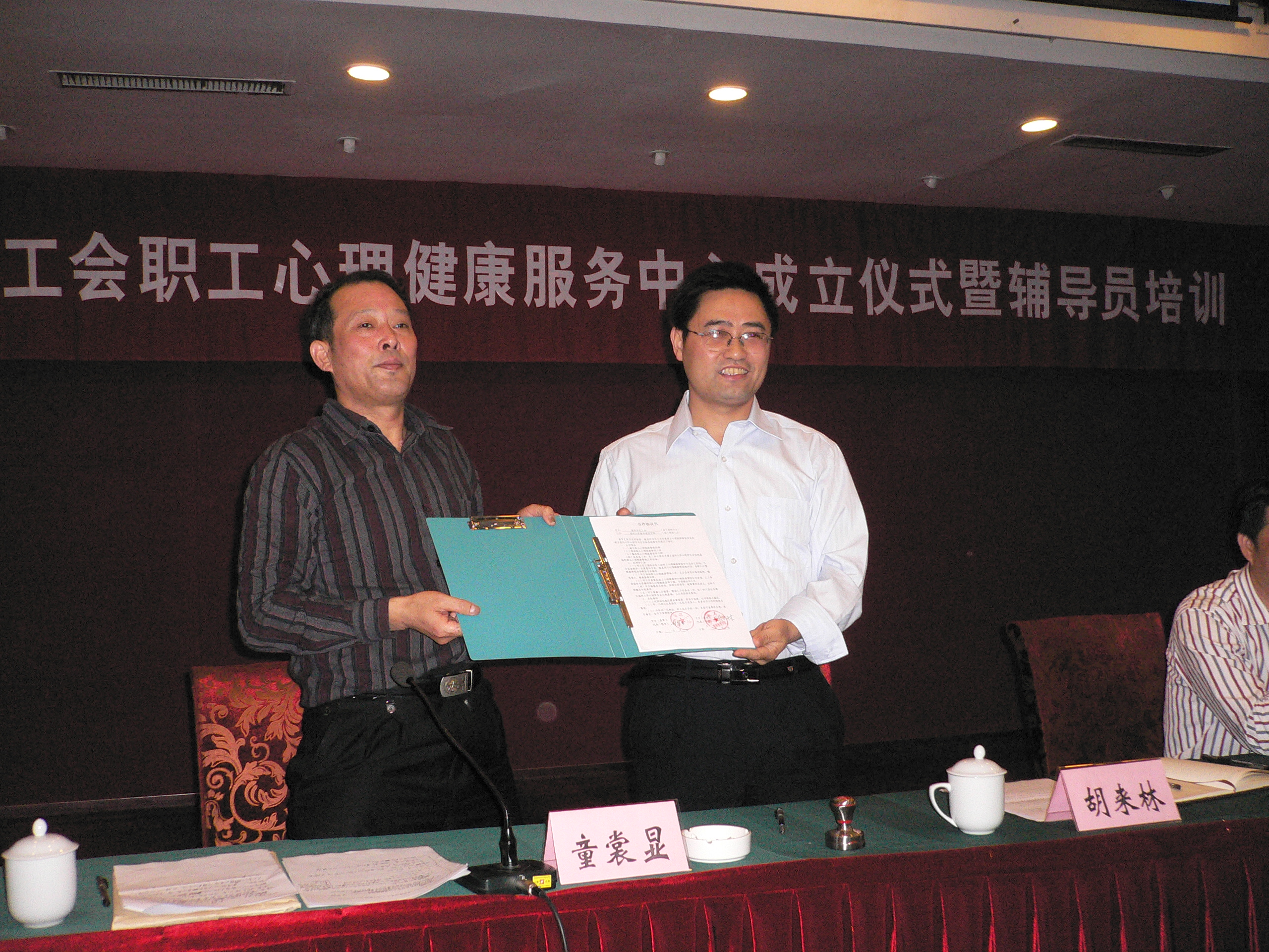 10月11日下午,在温州市工会职工心理健康服务中心成立仪式上,我院与温州市总工会签订了合作协议。该仪式在温州水心饭店举行,我院领导胡来林、郑信军、孙芙蓉及心理系教师代表出席了本次签约仪式。