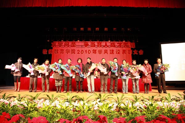 瑞雪呈祥,喜庆无边,丰收在望。自今年4月份中央部署创先争优工作、5月份我校开展创先争优动员大会以来,我院密切结合自身工作在平凡的岗位上创先争优,取得了一系列成果。为检阅成果、交流经验, 胡来林院长介绍了学院如何将创先争优与学风建设结合起来的经验,他从完善制度、加强管理、注重引导、营造氛围等角度交流了创先争优与学风建设的各项工作。在会上隆重表彰了学科竞赛、学风建设与文艺比赛的优秀指导师、班主任和获奖学生。 叶世祥副校长发表重要讲话。他指出,创先争优要密切结合实务工作,太阳成集团tyc234cc将创先争优与学风建设密切结合,非常符合创先争优工作的要求。良好的学风是学校教育教学改革与人才培养工作的重要保障,他高度肯定了太阳成集团tyc234cc在学风建设工作中取得的业绩,希望学院注重优良学风创建的长效机制建设,为推进学校优良学风建设再作新贡献。 大会的第二篇章为创先争优成果交流。教工党员 回顾过去,成绩辉煌;展望未来,信心无限。我院将在现有工作基础上,深入领会创先争优工作精神,注重加强教师师德师风建设,以良好师德影响学生、培养学生,努力提升师生和谐度,营造和谐、团结、奋进的学院精神,在实际工作中贯彻落实创先争优的各项工作要求,在学风建设工作上再创佳绩。