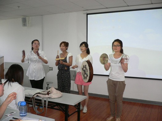 2010年5月19日下午,太阳成集团tyc234cc08学前本全体同学同学在任课老师林炎琴的指导下进行了一场别开生面的打击乐演奏会。这是一堂学前儿童艺术教育实操练习课,同学们以寝室为单位,自行选择乐曲、编配乐器、设计节奏型并进行演奏。三角铁、铃鼓、双响梆子…只见同学们将演奏乐谱贴到黑板上,手拿各类乐器,合着拍子专心致志地演奏起来,奥尔夫音乐实验教室里传来阵阵悦耳的打击乐声…演奏完毕,林炎琴老师给我们指出了其中不足并给了我们宝贵的建议,同时提醒我们以后在教学实践中的一些实际问题。同学们在这堂课中十分活跃,这种让同学们自己编排乐曲选择乐器演奏的方法不仅充分调动了同学们的积极性,而且让同学们在实际操作中了解了各种幼儿常用乐器的音色等特点,体会在实际音乐教学中的一些注意事项,让我班同学在巩固专业技能的同时也获得了艺术的熏陶。(通讯员:张宁)