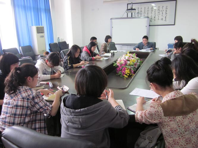 章志图老师传达了4月13日上午全校学生科长紧急会议精神,通报了近期校园内典型的、苗头性的重大安全隐患问题,指出心理委员工作的重要性和任务的艰巨性,希望大家以高度的责任心开展工作,树立“防范于未然、化解于无形”的工作理念,为和谐学院建设奉献力量。他还就下一阶段的心理健康工作提出了具体要求:一要提高警惕,加强对春季安全的重视;二要畅通渠道,及时传达和报送心理工作动态;三要加强学习,开展一次心理健康主题班会活动;四要管理到位,务必要严格执行外出请假制度;五要增强防范意识,防止同学们参加非法活动;六要做好平时观察,重点做好预防,将危机事件化解在萌芽状态。