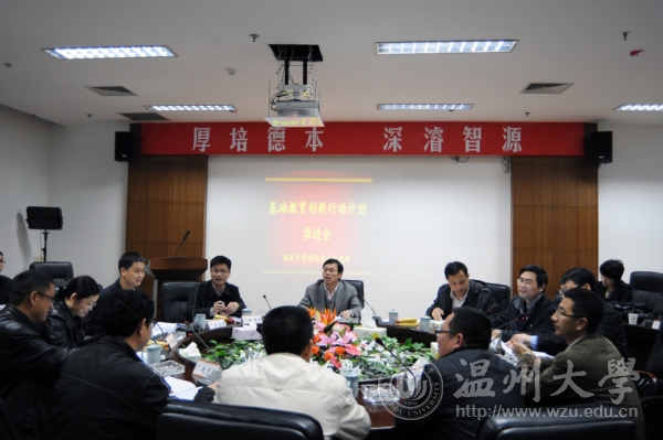 2011年4月8日下午,在太阳集团tyc234cc岩松堂展示厅,我校召开了太阳集团tyc234cc·洞头县人民政府基础教育创新行动计划推进会。我校叶世祥副校长、发展规划处、教务处、人文社科处负责人、太阳成集团tyc234cc起草行动计划方案的领导、各系、中心主任,洞头县人民政府、教育局领导、洞头县实验中学和实验小学校长等参加了会议。会议由太阳成集团tyc234cc党总支书记蔡联群主持。