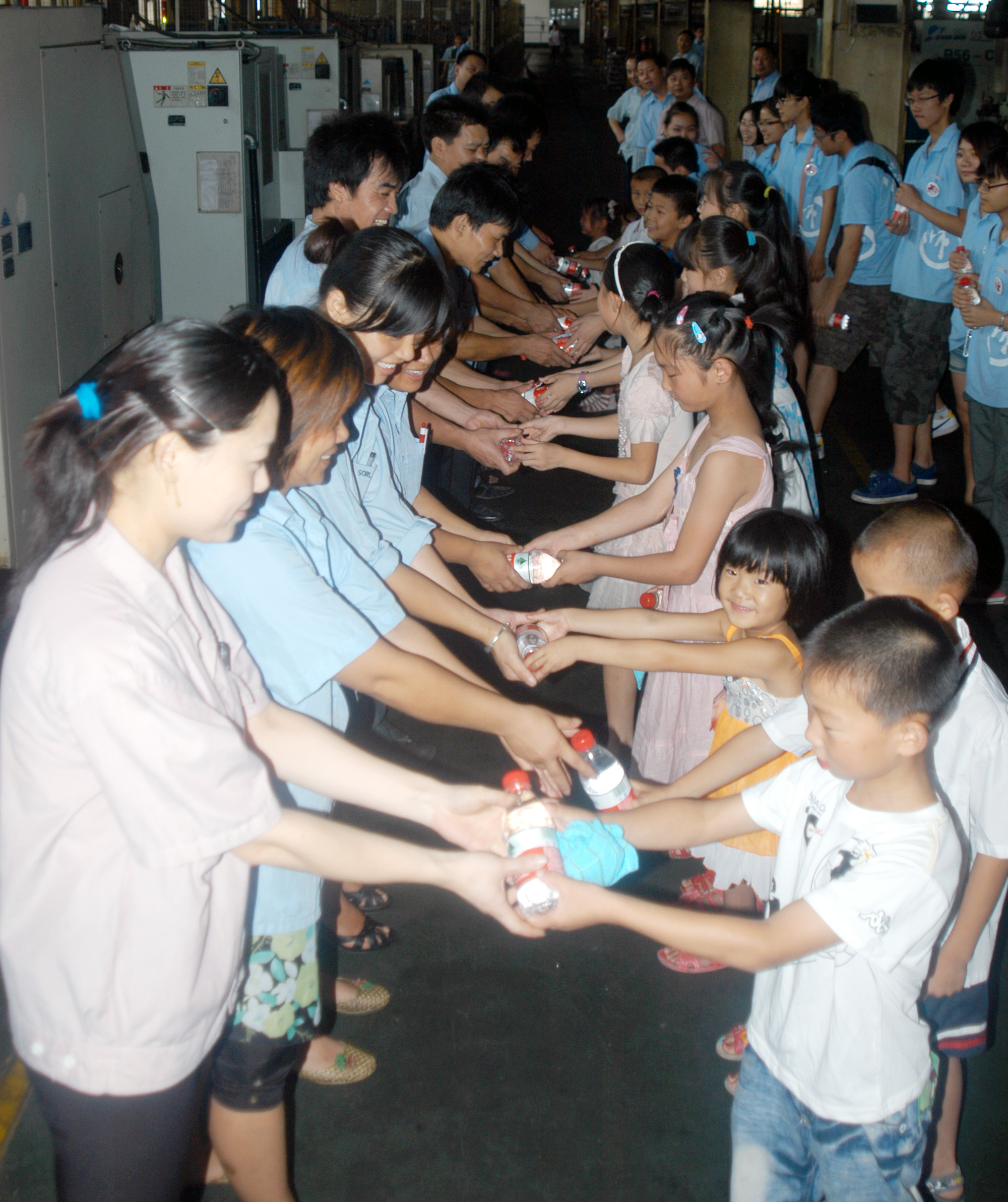 2011年7月14日,太阳成集团tyc234cc知行岭雅实践队开展了“感恩父母”下车间活动,组织孩子们下车间参观,体验父母工作的艰辛。