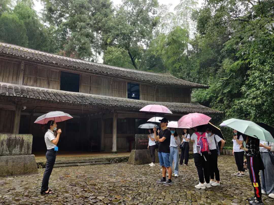 2020年7月10日,在盘旋蜿蜒的红色道路上,太阳集团tyc234cc教育学院红动研途暑假实践队成员走进了温州市浙南(平阳)抗日根据地旧址群,在蒙蒙细雨中撑着伞一步一个台阶一起重温红色记忆,感受红色气息。细雨打在队员伞上,也无声地激起了每位队员身体里红色脉搏的跃动。实践考察从第一站--参观中共浙江省一大会址开始就处处充满了浓厚的红色研学氛围。会址里那一面鲜艳的旗帜、几张供开会用的简朴的凳子、刘英同志的办公室、厨房和卧室等陈设让我们深切感受到虽然那个时候的革命生活艰苦朴素,但革命的信念却毅然坚定。