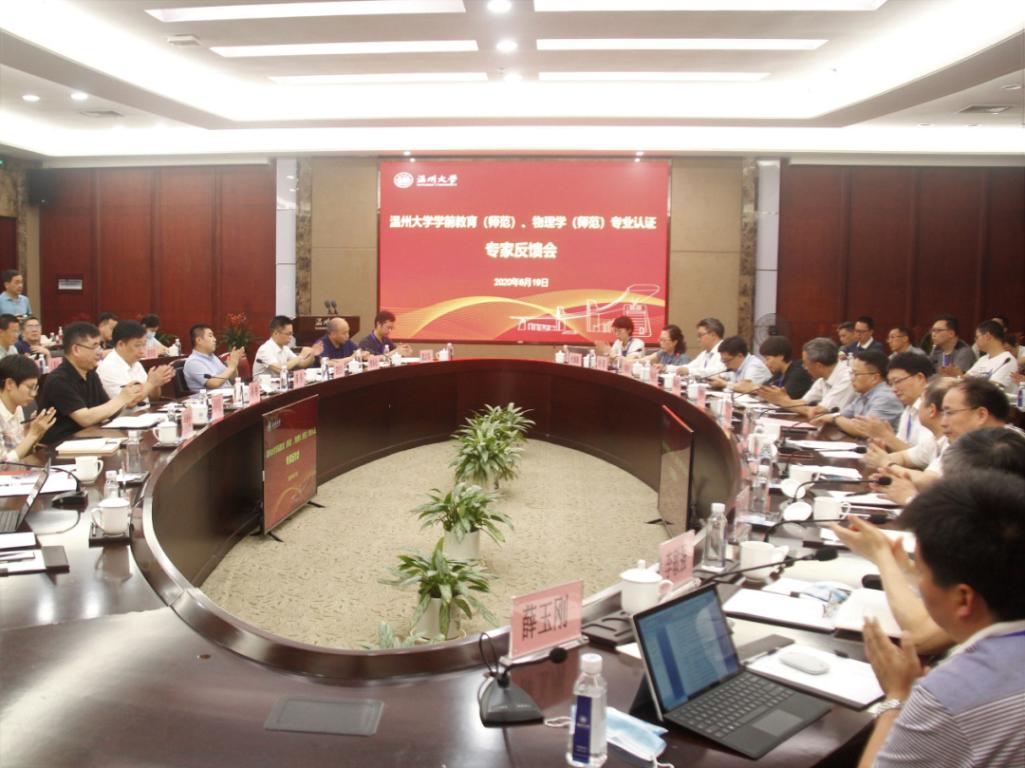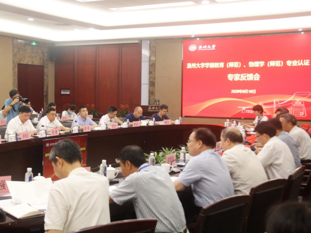 6月19日下午,学前教育专业和物理学专业的专业认证专家反馈会在太阳集团tyc234cc岩松堂白鹿厅举行。太阳集团tyc234cc校长赵敏、副校长薛伟、徐和昆,校各有关职能部门的负责人,教育学院、数理学院的领导,学前教育专业、物理学专业负责人和专业教师代表参加了此次见面会。浙江省教育厅教师工作处副处长林涛也莅临现场。