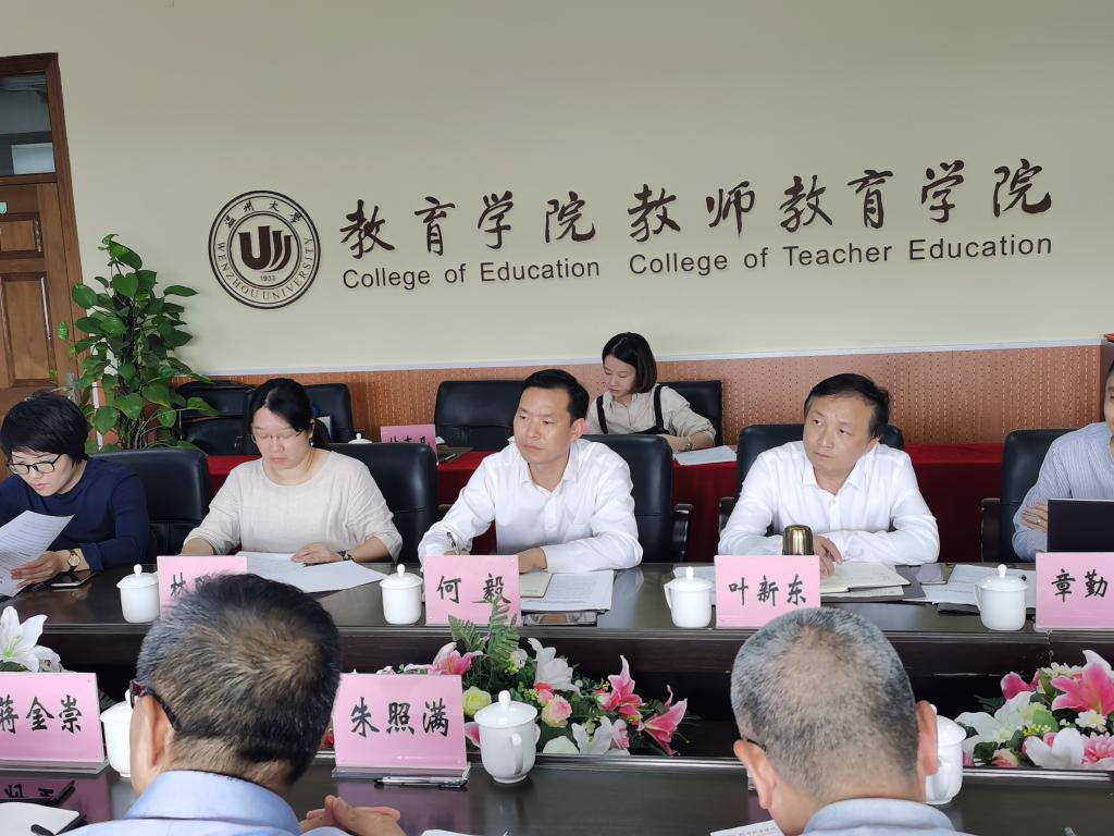 2020年10月16日下午,太阳集团tyc234cc教育学院与温大基础教育发展中心及附属学校共建专题研讨会在教育学院9A410会议室召开。太阳集团tyc234cc基础教育发展中心、太阳集团tyc234cc附属学校代表和学院领导及学院各系主任参加会议,教育学院何毅书记主持。
