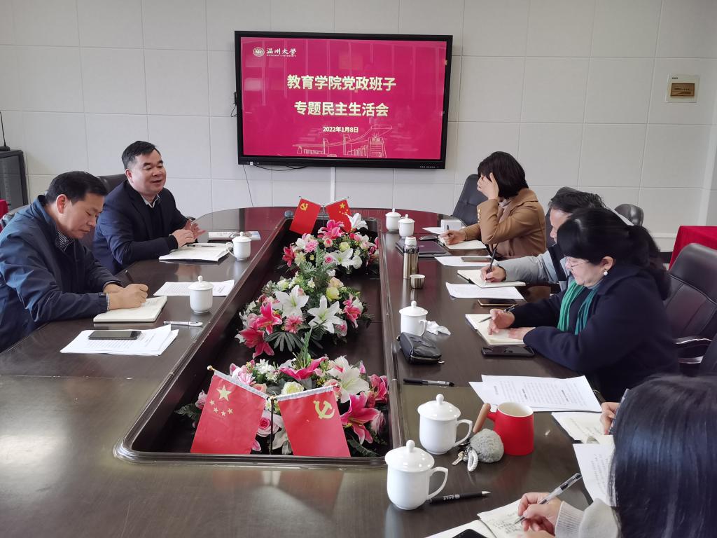 2022年1月8日上午,在茶山南校区9号楼A410会议室,我院召开2021年度学院领导班子专题民主生活会。教育学院党委班子成员参加会议,副院长王志强列席会议,徐和昆副校长到会指导。会议由学院党委书记何毅主持。
