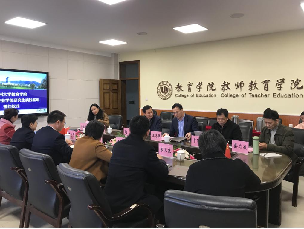 2022年3月7日,太阳集团tyc234cc教育学院与温州森马协和国际学校共建“教育硕士专业学位研究生实践基地”签约仪式在我院隆重举行。我院党委书记何毅、副院长王志强、各硕士点负责人和森马协和国际学校黄海校长一行参加会议。