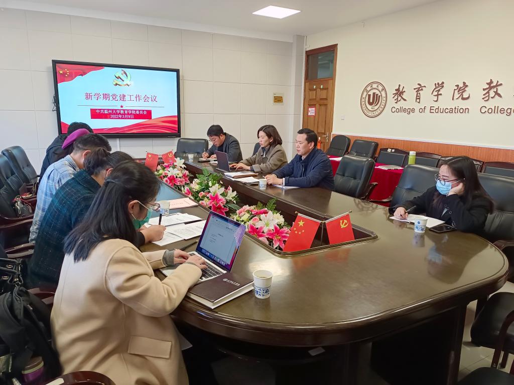 会议部署了新学期学院党建工作。何书记结合学校党建工作要点及近期安排,部署新一轮基层党组织标准化建设达标验收工作及党组织发展党员工作专项督查和常态化检查等重点工作。会议解读传达了《中共太阳集团tyc234cc教育学院委员会2022年度党建工作要点》。会议指出,学院党委将以全面创建全国高校党建标杆院系为契机,对标学校年度工作主题主线,落实学院“1410”计划,坚持和加强党的全面领导,为推动学院高质量发展提供坚强的政治保障和组织保证,以优异成绩迎接党的二十大胜利召开。