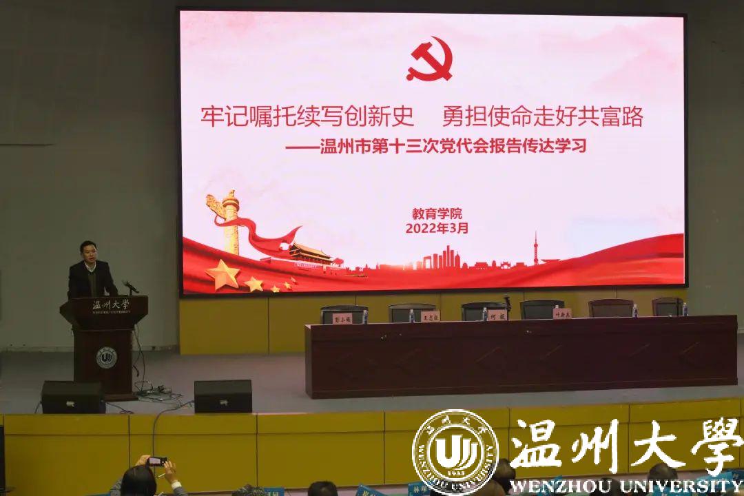 第二阶段为政治理论学习。何毅书记作《牢记嘱托续写创新史勇担使命走好共富路——温州市第十三次党代会精神学习解读》的专题报告。他带领全体教职工从“温州过去五年的成绩”“温州未来五年的奋斗目标”“温州未来五年的工作重点”等三个方面对市十三次党代会精神进行全面深入的解读。会议强调,全院师生要充分认识市第十三次党代会的重要意义,强化政治意识,把学习贯彻党代会精神作为当前的首要任务,分层次、分阶段、多形式深化学习领会,推进学院高质量发展。