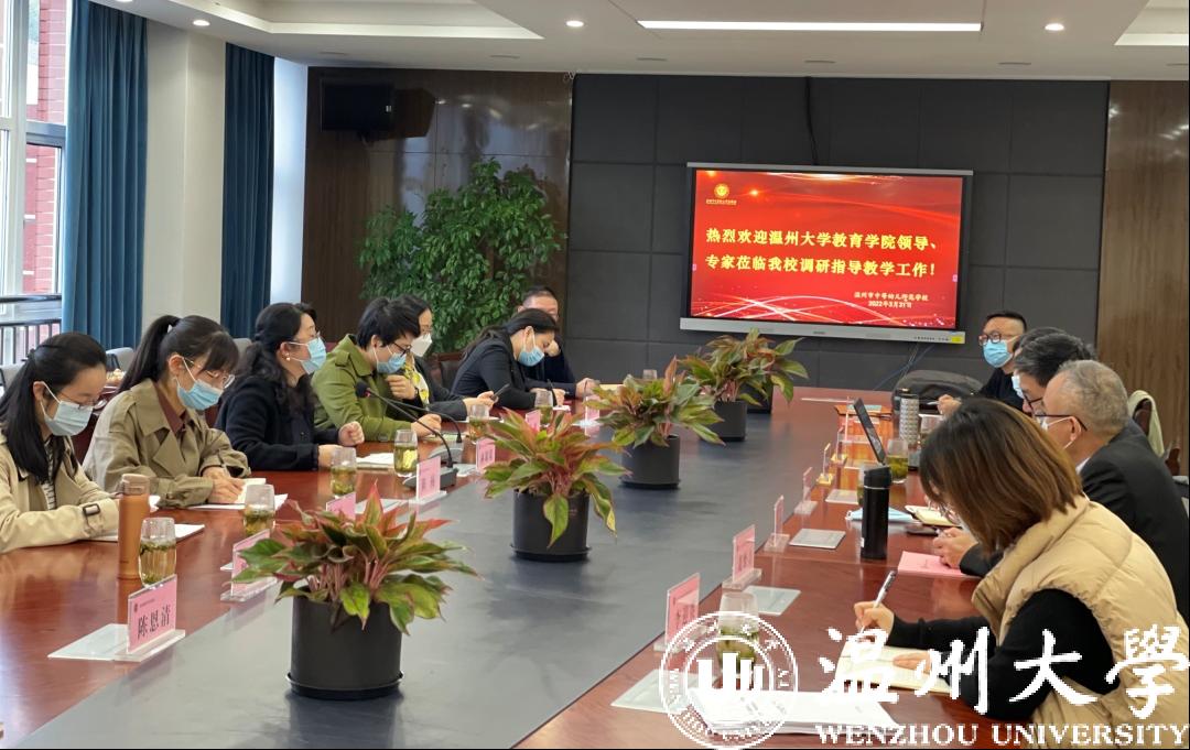 蒋高烈校长代表学校对温大专家组一行表示热烈欢迎,期待在专家们的指导下,进一步提升课堂教学水平,提高人才培养质量。随后,专家们分组开展课堂听课、专项调研等活动。本次教研活动采用线上线下同步进行,乐清校区的教师在线参与教研活动。