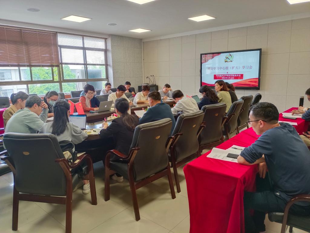 4月13日下午,我院在9A410召开学院党委理论学习中心组(扩大)学习会暨中层干部会议。学院领导班子,系所(中心)书记、主任,各科室负责人参加会议,学院党委书记何毅主持。