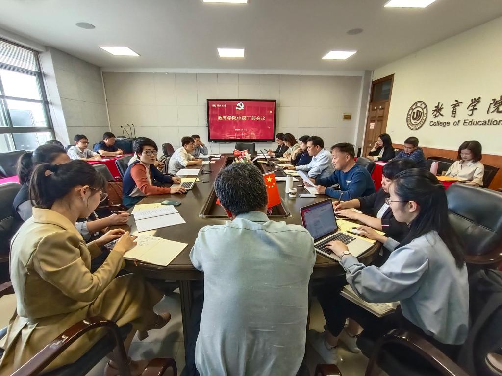 随后学院召开中层干部会议。学院领导班子分别就近期人才培养、研究生招生、就业工作、人事人才、意识形态、疫情防控、校园安全等工作进行传达部署,与会人员对系(中心)、科室工作做了汇报交流。