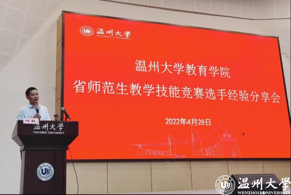 4月28日晚,我院在学院一楼报告厅隆重举行浙江省第十五届师范生教学技能竞赛教院选手经验分享会暨新一轮学院师范技能大赛启动仪式。学院党委书记何毅、副院长林琛琛出席,各班级派代表参加分享会。