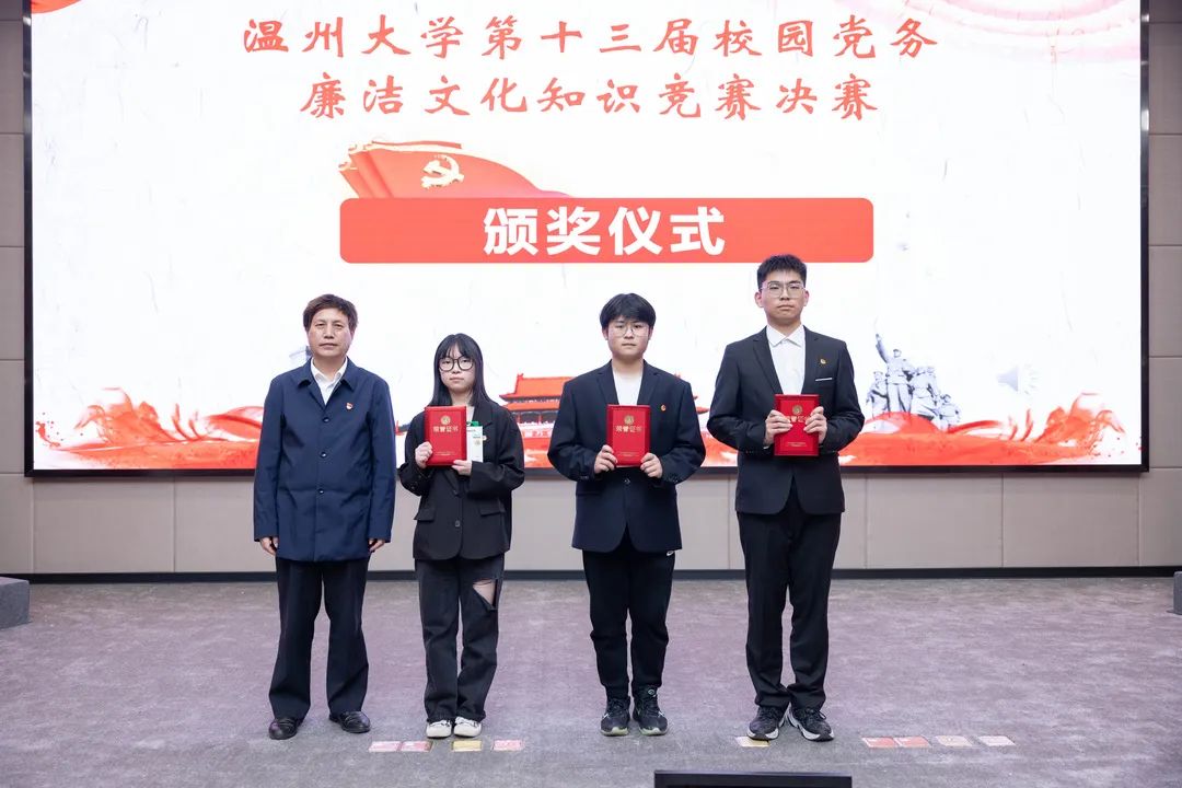 5月4日下午,以“致敬百年奋斗路 谱写廉洁新乐章”为主题的太阳集团tyc234cc第十三届校园党务廉洁文化知识竞赛决赛在育英图书馆二楼报告厅举行。校党委委员、纪委书记、省监委驻温大监察专员杨林书,校纪委副书记、纪检监察室主任(兼巡察办主任)杨立淮,教育学院党委书记、副院长何毅,校纪检监察室副主任张雪萍,校党委组织部档案科科长陈煜,各学院党委副书记兼纪委书记、参赛学院师生代表参加了本次活动。