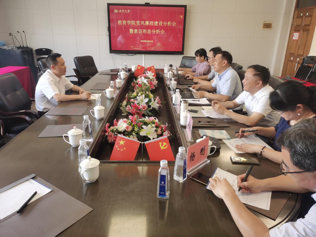 6月24日上午,教育学院在茶山南校区9号楼A410会议室,召开2022年上半年党风廉政分析会暨意识形态分析会,副校长王舜出席会议并指导讲话,学院领导班子成员参加会议。会议由学院党委书记何毅主持。