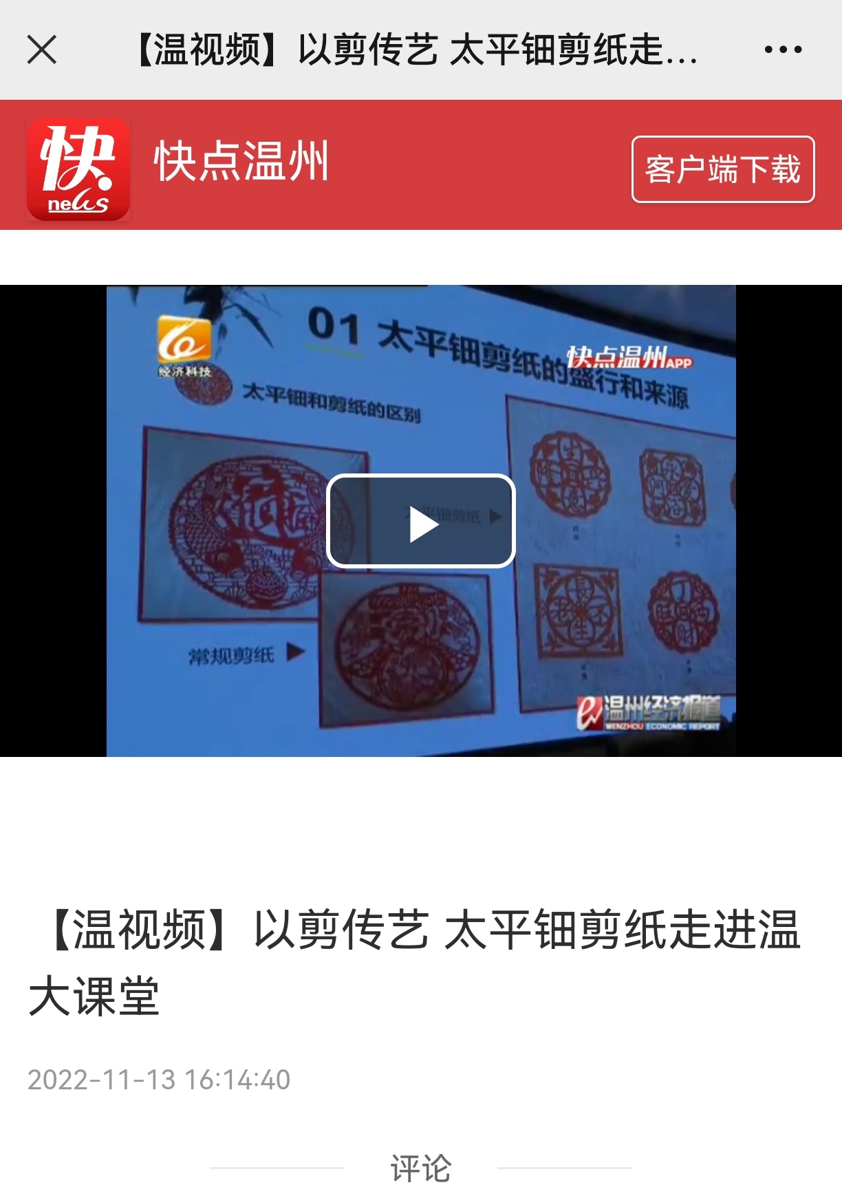 近日,太平钿剪纸非遗艺术走进太阳成集团tyc234cc课堂,1000多名学生感受指尖上的艺术传承,在倾听和体验中上了一堂生动的非遗“大思政课”。