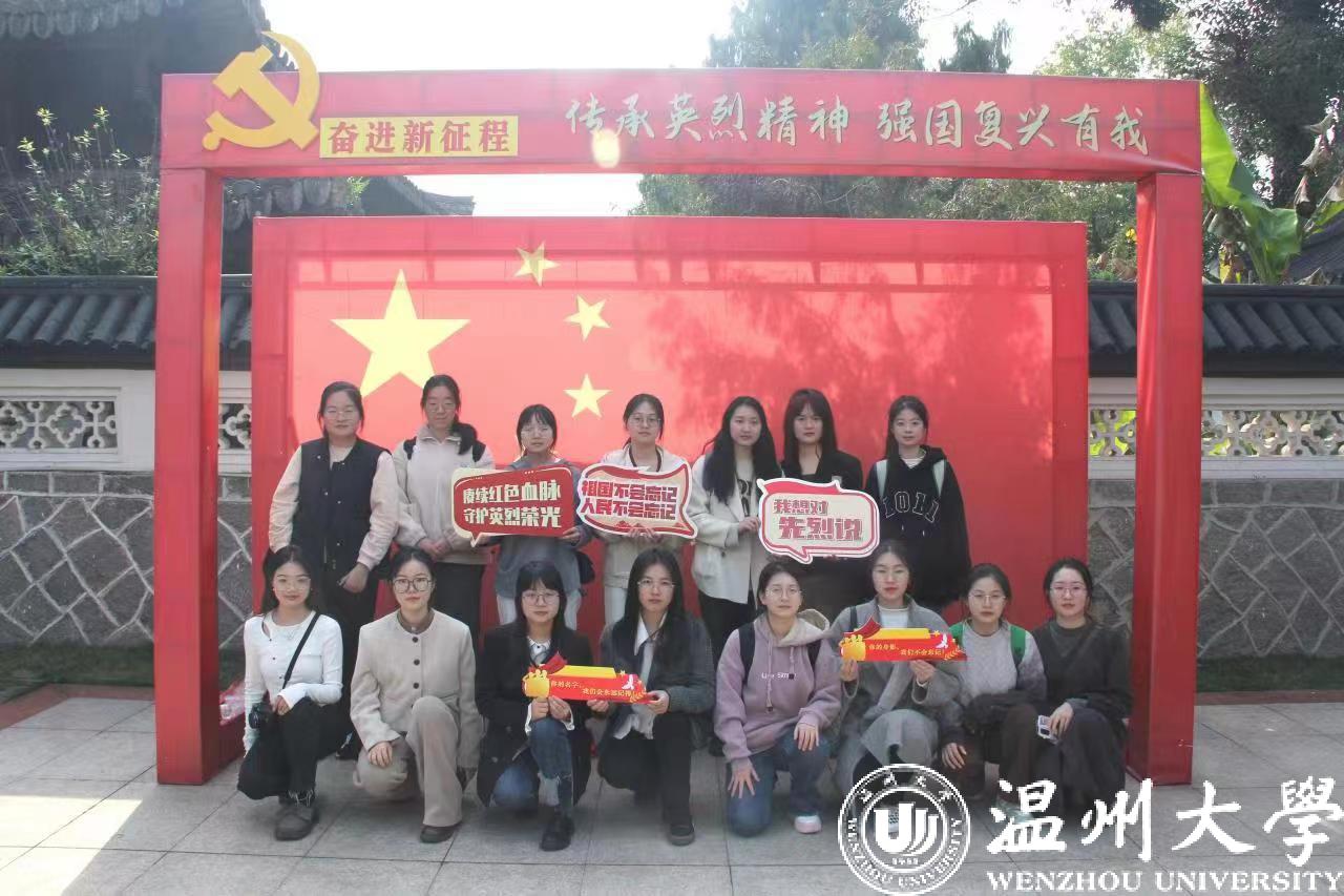 据悉,温州革命烈士纪念馆自1956年建馆以来,已历经60余载,是温州市褒扬英烈、教育后人的红色主阵地,也是温州市地标性的红色“老字号”。清明之际,缅怀之时,教育学院作为太阳集团tyc234cc基层团建“红色根脉强基工程”试点学院,充分利用温州红色教育主阵地作用,在基层团支部深植“红色根脉”,助力红色精神代代传。