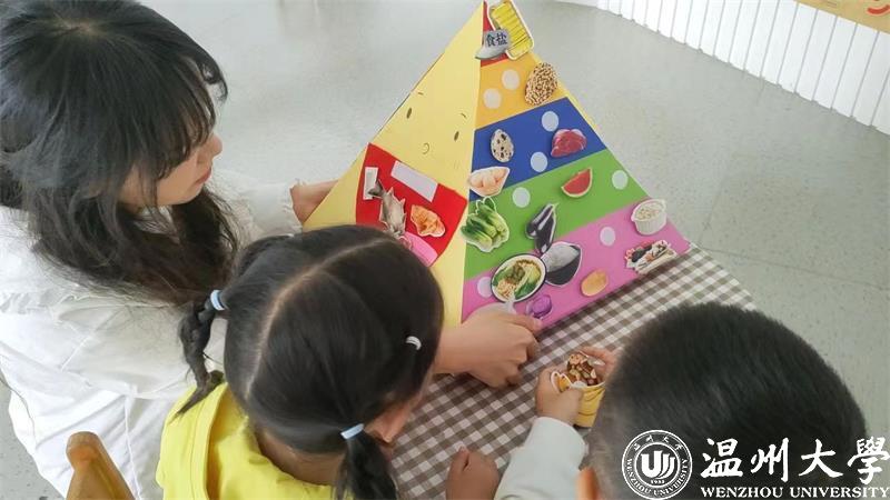 “太聪明啦宝贝,这样放是对的哦。”团队成员瑶瑶惊喜的发现小朋友们在短短的活动时间里,已经能够大致分清不同种类食物在盘子里的占比。