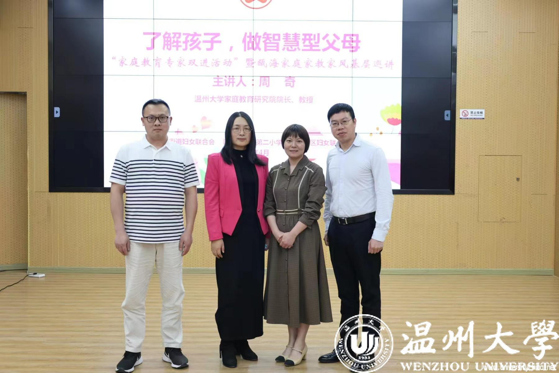 苏霍姆林斯基说:“最完备的教育是学校与家庭的结合。”学校家庭相互合作,协同育人,才能共促孩子成长。近日,温州市妇联推出家庭教育服务进社区进学校“双进”活动暨瓯海家庭家教家风基层巡讲,太阳集团tyc234cc教育学院教育系支部书记、太阳集团tyc234cc家庭教育研究院院长、太阳集团tyc234cc家庭家教家风讲师团团长、温州市家庭教育学会副会长,浙江省妇女儿童发展智库专家,浙江省家庭教育讲师团成员全国家庭工作先进个人周奇教授来到瞿溪第二小学,为四年级的家长们作《了解孩子,做智慧型父母》的主题讲座。