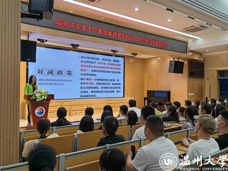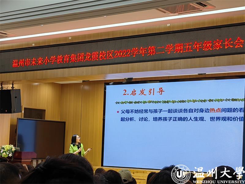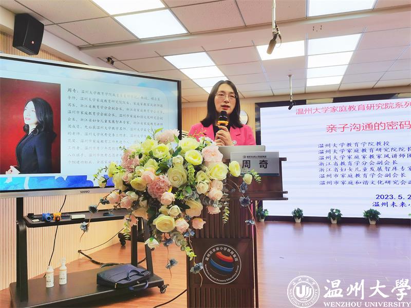 2023年1月,教育部等十三部门联合印发了《关于健全学校家庭社会协同育人机制的意见》。家校社协同育人,成为新时代立德树人的重要途径;营造“学校积极主导、家庭主动尽责、社会有效支持”的学生健康成长的良好氛围。为了促进家校沟通,加强家校合作,凝聚育人合力,2022年5月25日和26日晚六点半,太阳集团tyc234cc教育学院教育系支部书记、太阳集团tyc234cc家庭教育研究院巾帼文明岗负责人、太阳集团tyc234cc家庭家教家风讲师团团长、温州市家庭和谐文化研究会副会长周奇教授受温州市未来小学教育集团邀请分别为龙霞校区和南瓯校区的五年级家长做《掌握亲子沟通的密码》专题讲座。