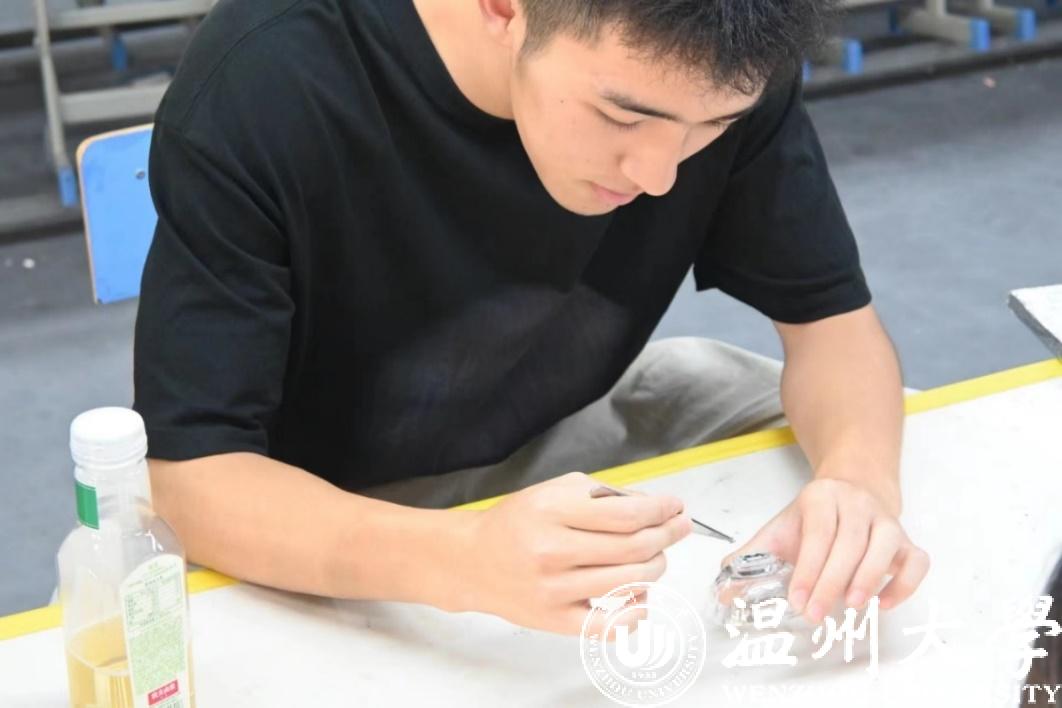 实践团成员体验贝母螺钿工艺品 太阳集团tyc234cc供图