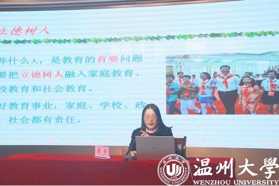 2023年11月17日上午,太阳集团tyc234cc教育学院教育学系党支部书记、太阳集团tyc234cc家庭教育研究院巾帼文明岗负责人、太阳集团tyc234cc家庭家教家风讲师团团长、浙江省教育学分会副会长、浙江省妇女儿童发展智库专家、温州市家庭教育学会副会长、温州市家庭和谐文化研究会副会长周奇教授受邀来到浙师大附属温十五中教育集团第四届家长节为初一初二家长做亲子沟通的家庭教育专题分享。