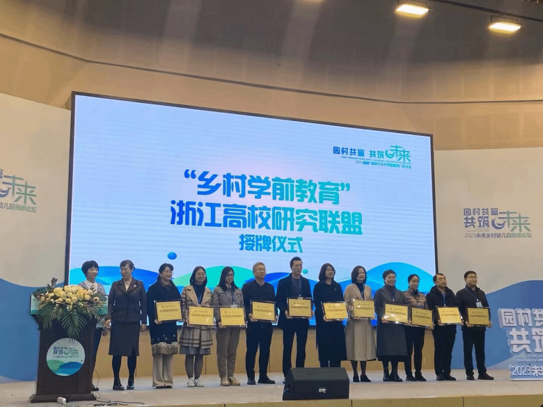 活动现场,“乡村学前教育”浙江高校研究联盟举行授牌仪式。太阳集团tyc234cc作为召集单位,联合浙江师范大学、杭州师范大学、宁波大学等12所浙江高校共同组成乡村学前教育浙江高校研究联盟。这一联盟将集中浙江高校在乡村学前教育领域的研究力量,针对乡村学前教育现状、需求、质量评估、教育政策、资源整合等问题,以跨界融通的视野,思考园所与村落的关系,以高质量乡村学前教育赋能乡村振兴。