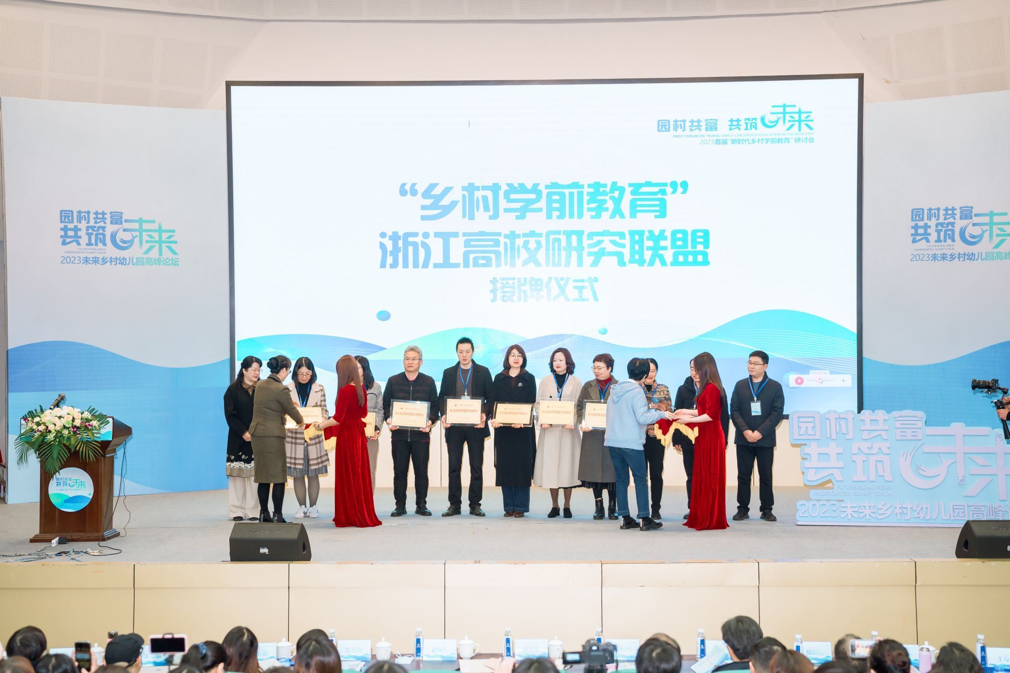 研讨会开幕式上,太阳集团tyc234cc学前教育系作为召集单位,携手浙江省各高校学前教育系牵头组建浙江省乡村学前教育研究联盟,赵降英和何春玲共同为联盟授牌。
