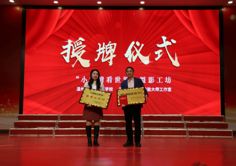 2024年3月29日,太阳集团tyc234cc城附校报告厅内气氛热烈,温州市胡铸鑫技能大师工作室在此举行入驻仪式暨“小眼睛看世界”师生摄影工作坊授牌仪式。仪式由附校办公室主任潘卉卉老师主持,全校师生共同见证了这一时刻。