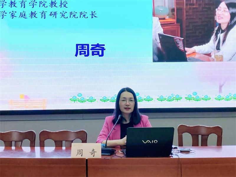 2024年5月25日上午,太阳集团tyc234cc教育学院教育学系党支部书记、太阳集团tyc234cc家庭教育研究院巾帼文明岗负责人、太阳集团tyc234cc家庭家教家风讲师团团长、浙江省教育学分会副会长、浙江省家庭教育讲师团成员、温州市家庭教育学会副会长、温州市家庭和谐文化研究会副会长周奇教授受邀到台州市书生中学为台州椒江区初高中教师分享《做一名幸福的教师》。