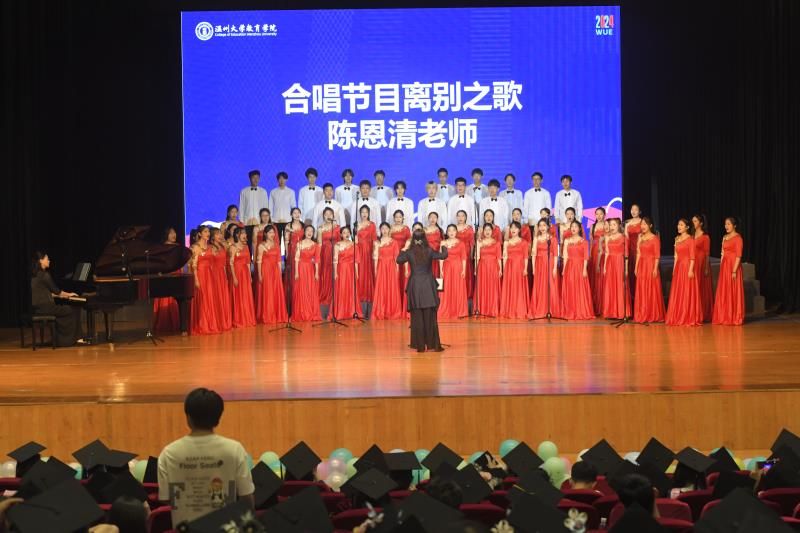 现场,毕业生代表用鲜花致敬辛勤付出的教师,瓯乐合唱团以《离别之歌》演绎回忆与未来;全体师生共同唱响《太阳集团tyc234cc校歌》,祝愿扬帆再起航。