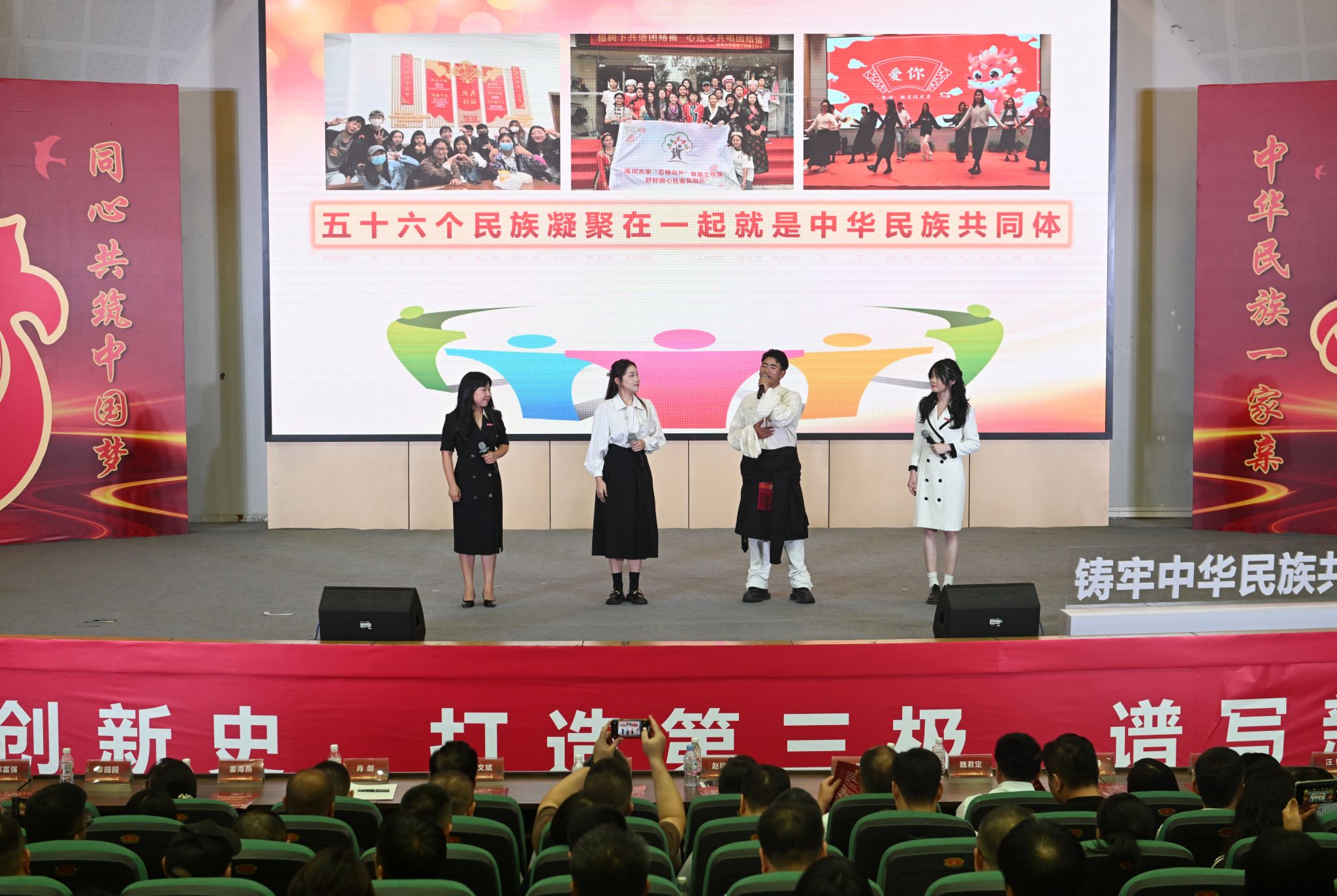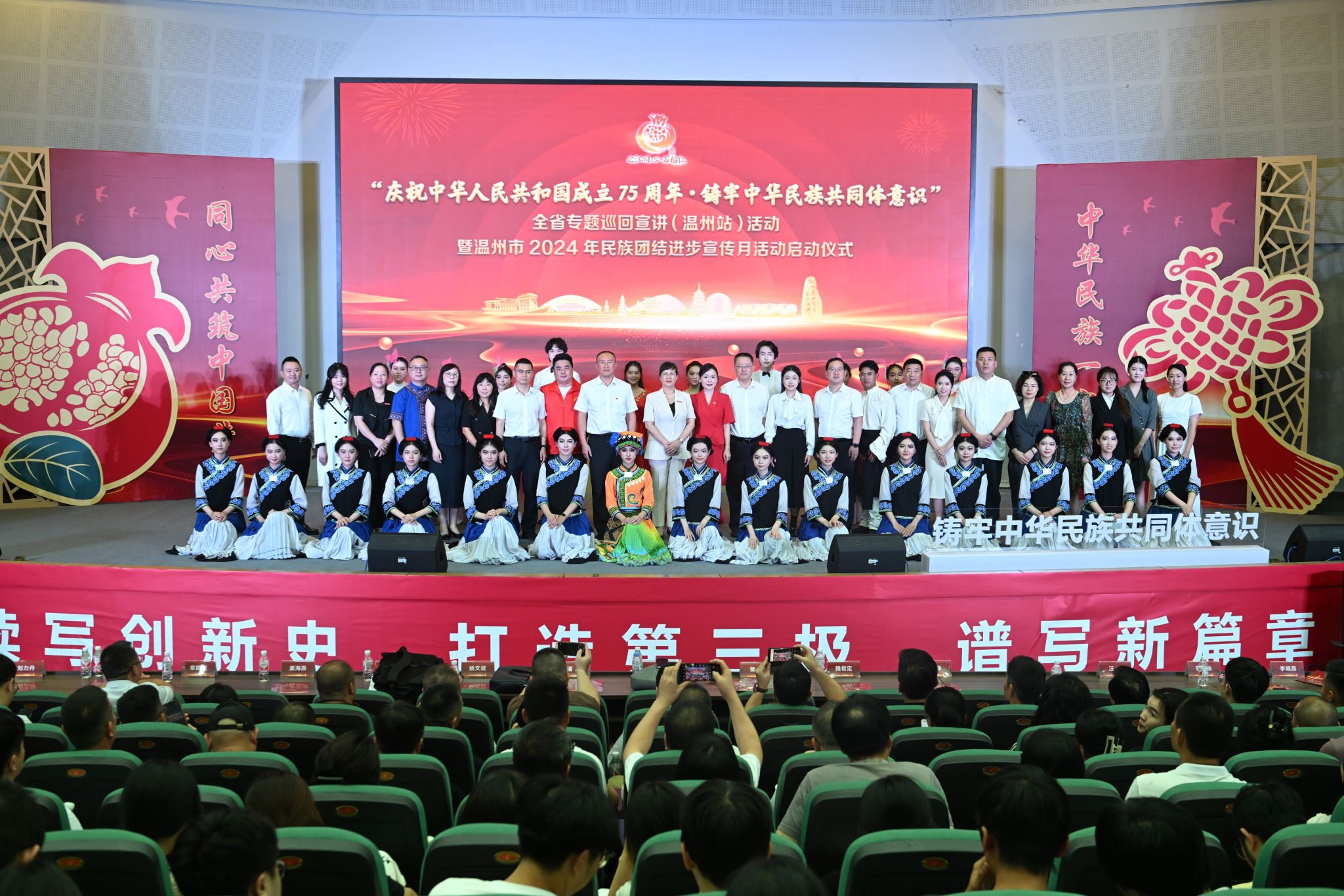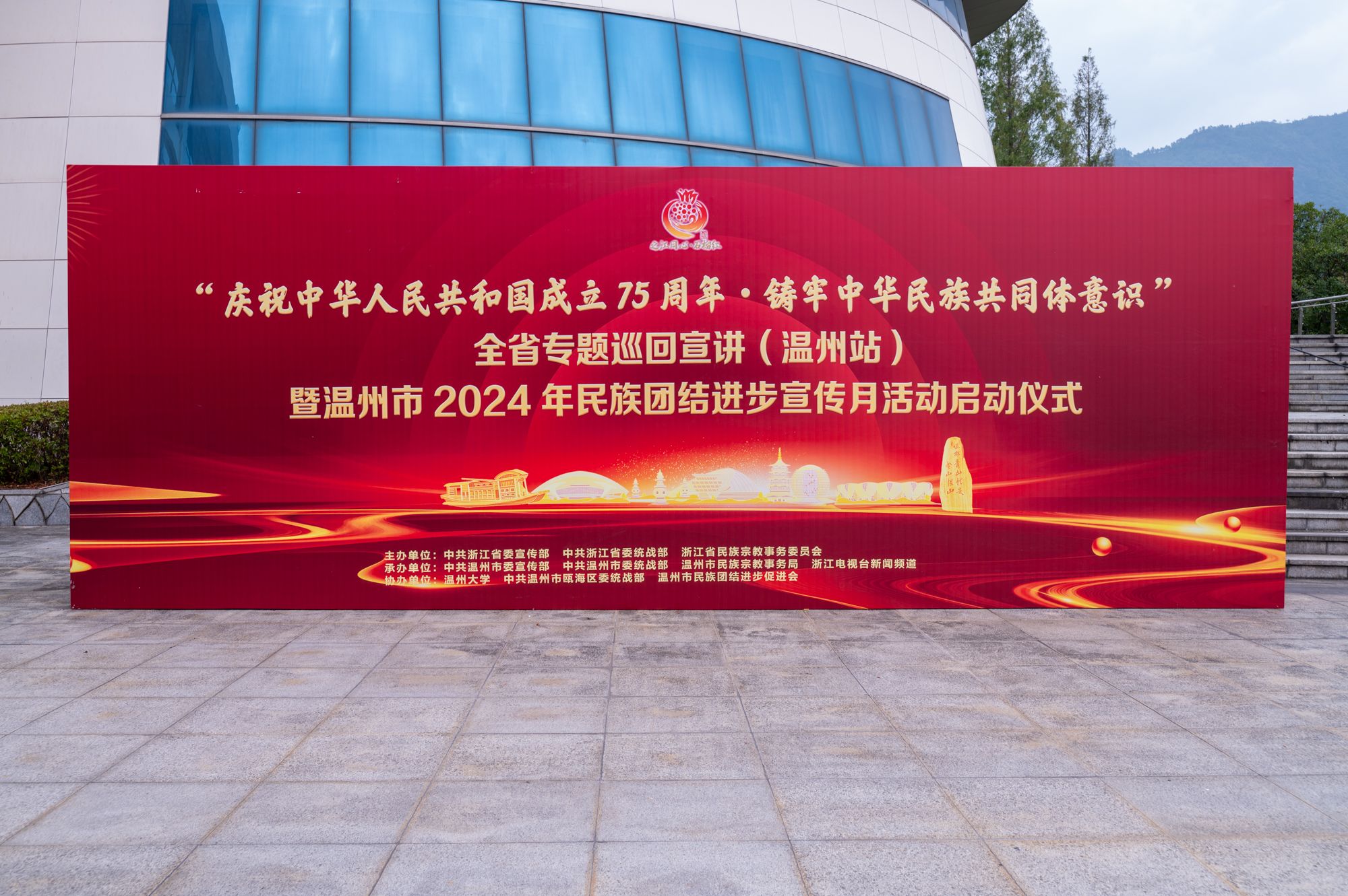 瓯越同心助强城,中华民族一家亲。近日,“庆祝中华人民共和国成立75周年·铸牢中华民族共同体意识”2024年度全省专题巡回宣讲活动(温州站)暨温州市2024年民族团结进步宣传月活动启动仪式在太阳集团tyc234cc举行。10万余人次线上观摩本次活动。