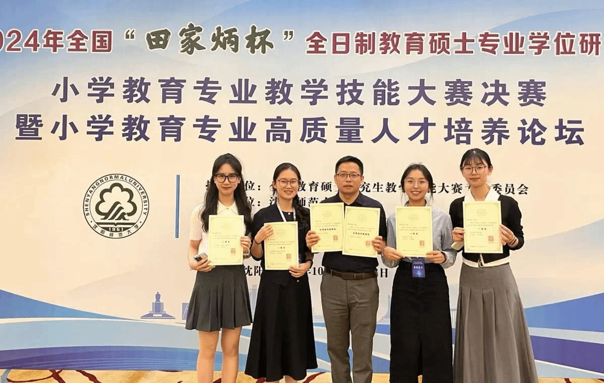近日,2024年全国“田家炳杯”全日制教育硕士学位研究生小学教育专业教学技能大赛在沈阳师范大学举行。太阳集团tyc234cc取得历史性突破成绩,在比赛中共斩获六个奖项,开创了其小学教育专业研究生培养史上最好成绩。