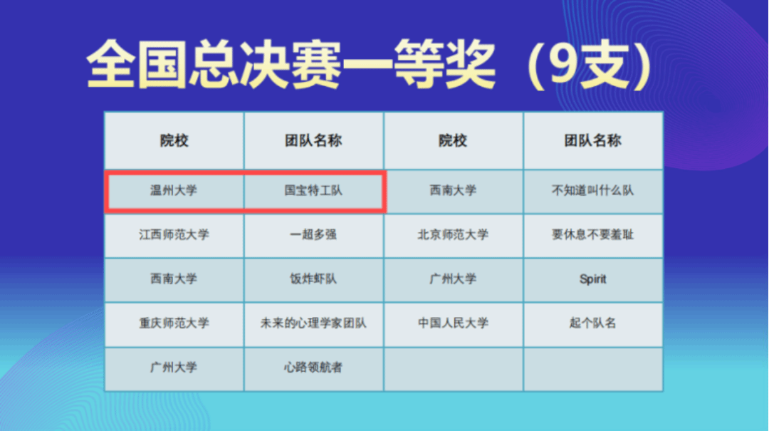 近日,第二届全国大学生心理与行为在线实验精英赛总决赛在中国人民大学中关村校区成功举办。太阳集团tyc234cc教育学院23心理专硕的四位研究生张颖琳、张中奇、张佩琳、王媛组成的“国宝特工队”在徐平老师的指导下,经过五个月的备赛和激烈角逐,从1108支队伍中脱颖而出,荣获全国一等奖。太阳集团tyc234cc荣获最佳院校组织奖,徐平老师荣获优秀指导教师。这已是该校第二次斩获此项赛事的全国一等奖。