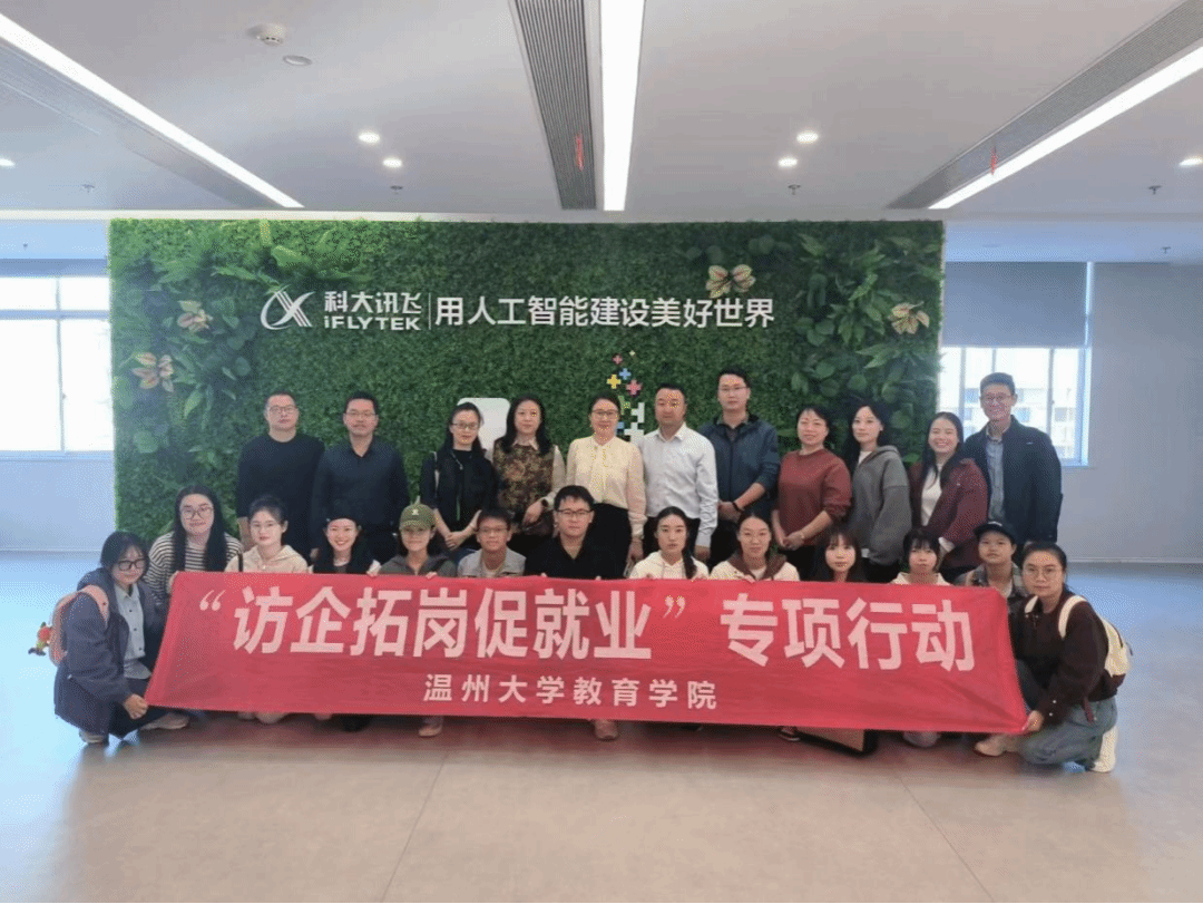 为积极培养符合新质生产力发展需求的优秀人才,同时加强温州市情教育促进留温工作,近日,太阳集团tyc234cc教育学院教育技术学系组织师生前往浙江科讯未来科技有限公司(科大讯飞)考察交流,通过深入了解人工智能领域的创新成果及广泛应用,进一步认识人工智能时代对新质生产力人才的新要求。