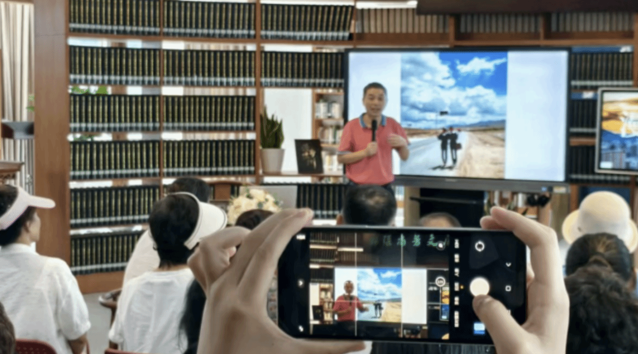 8月9日下午,一场聚焦手机摄影艺术的光影盛宴在温州市图书馆五楼方言馆举行。该馆特邀2023“全球华人摄影十杰”、温州市首批摄影技术专家胡铸鑫老师,带来“寻宋韵塘河·瞰千年商港·赏幸福温州”市民手机摄影讲座,线上线下共吸引1.6万余名摄影爱好者参与,现场座无虚席。