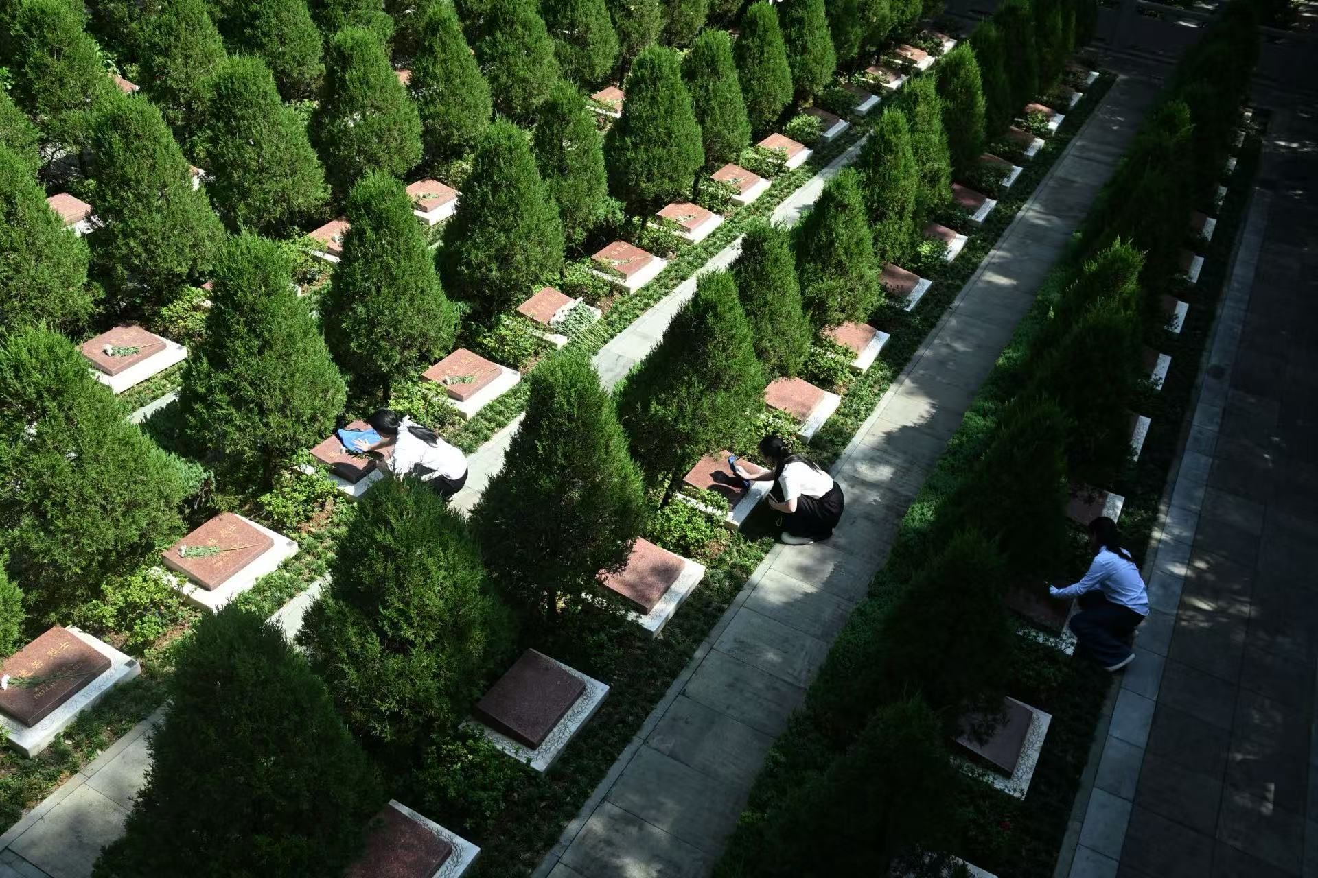 同学们还自发开展了“我为英雄擦墓碑”活动。“我想到,今日之中国是无数先烈用流血牺牲换来的,一块块墓碑激励着我们要时刻铭记历史之痛、不忘先辈之志,守护来之不易的幸福生活。”一位青年团员一边小心翼翼地擦拭墓碑上尘埃一边说。