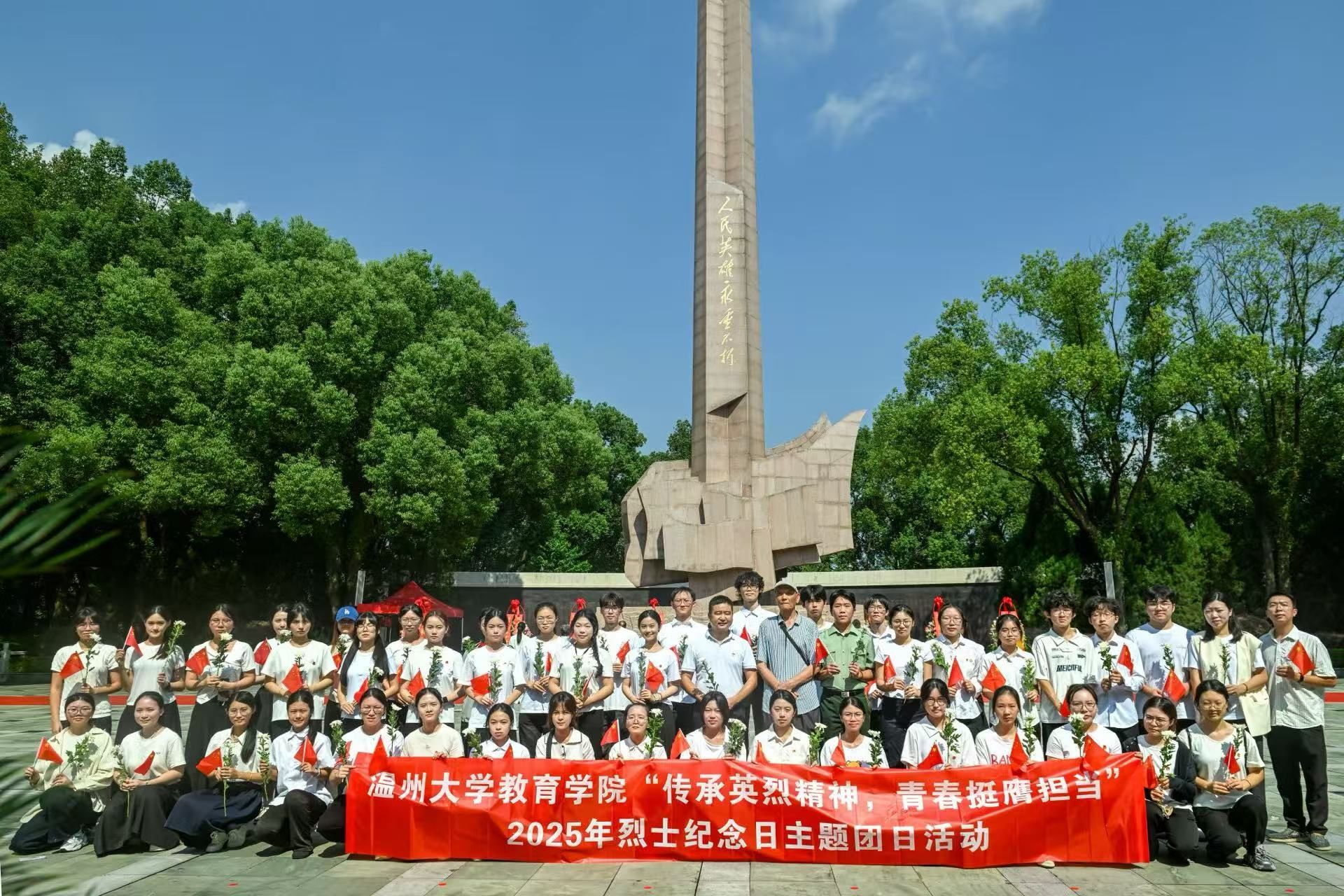 9月30日是中国烈士纪念日。当天,太阳集团tyc234cc教育学院师生代表来到温州市翠微山烈士陵园,以“传承英烈精神,青春挺膺担当”为主题开展团日活动,在实景体验、亲身实践、志愿服务中,共上一堂沉浸式“行走的思政课”。