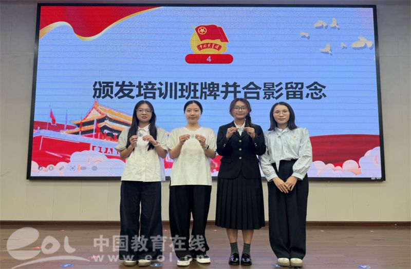 与会老师为参训学员代表颁发培训班班牌。在学生代表的带领下,全体学员进行了庄严宣誓。铿锵的誓言坚定了学员们履职尽责、服务同学的决心,标志着从“我承诺”到“我必行”的信念升华。