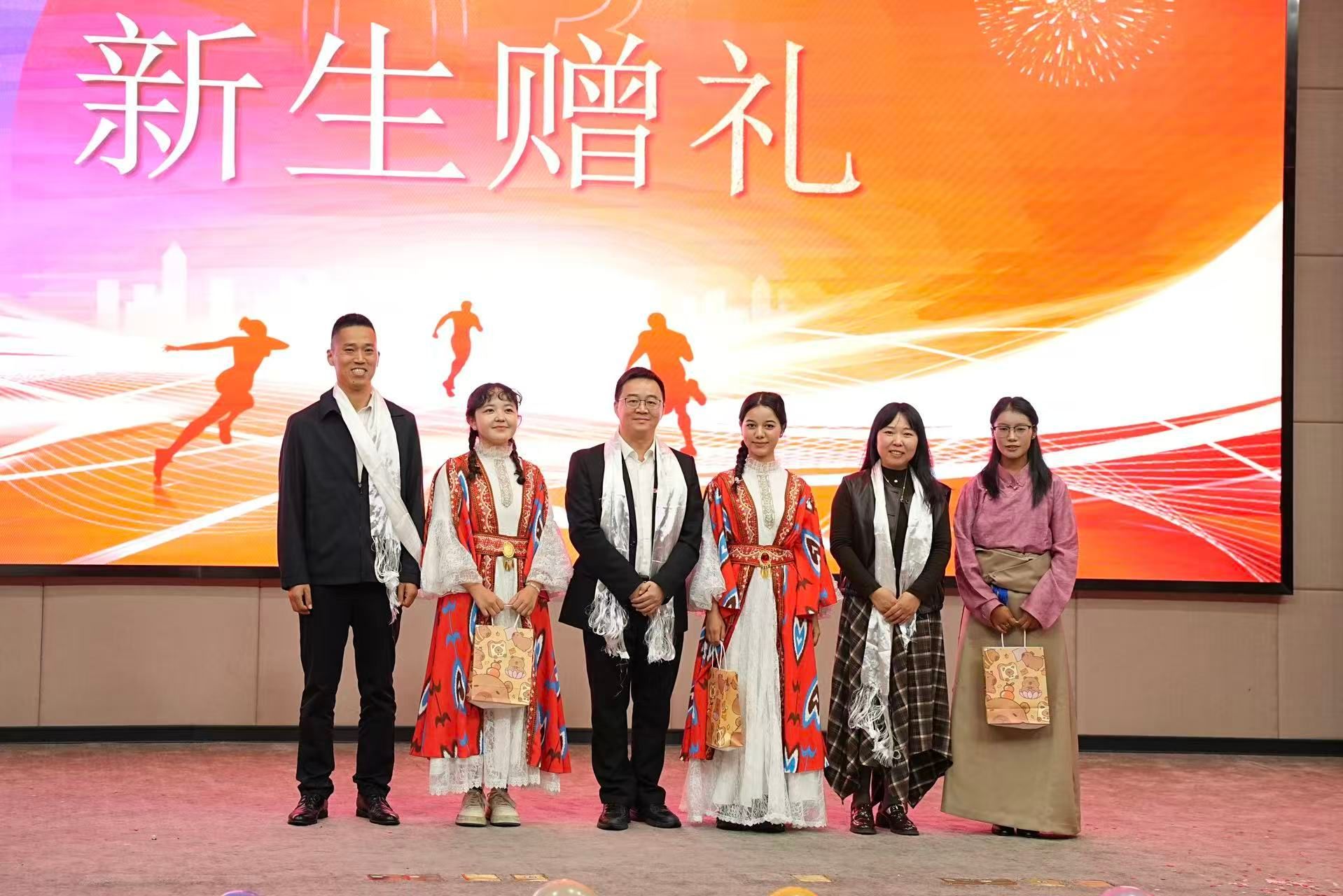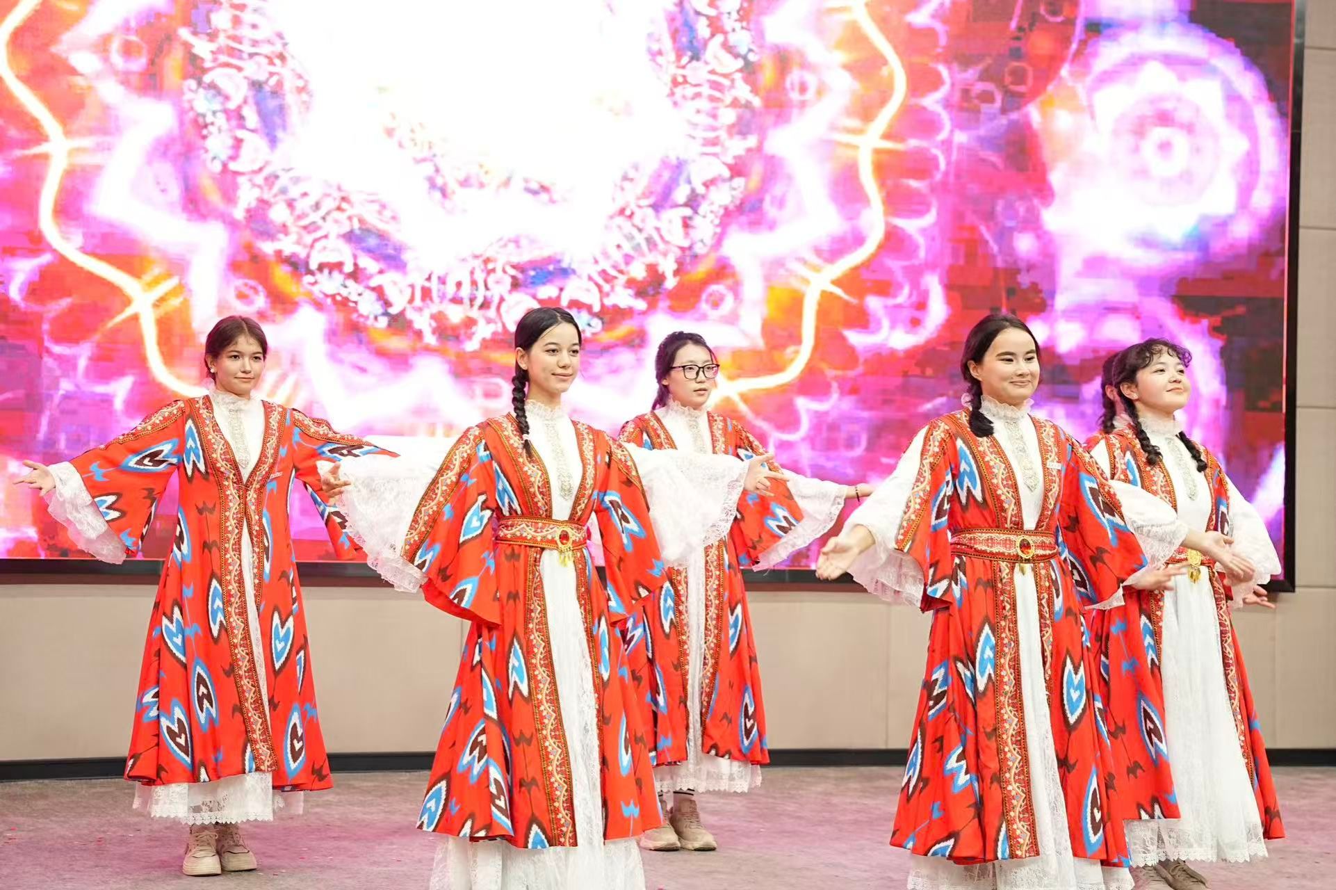 现场的迎新献礼环节温情满满。学校为今年入学的少数民族学生赠送惊喜礼包,新生代表则向老师们敬献象征敬意与祝福的洁白哈达,传递尊师重道与民族情谊。民族风情文艺汇演更是异彩纷呈,藏族舞《首饰》轻盈典雅,新疆舞串烧热烈奔放,歌曲《在那东山顶上》空灵动人,藏族群舞《授权》、哈萨克族舞《黑走马》等节目赢得热烈的欢呼与掌声……中场穿插的民族知识趣味抢答环节更是“以乐传学”,让师生在轻松愉快的氛围中学习民族文化知识,加深对多元一体中华文化的理解与认同。