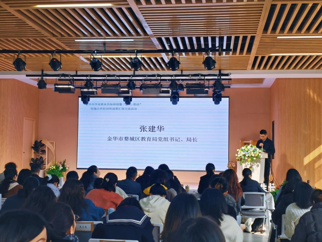 12月18日,金华市婺城区紫金幼儿园内,金华市学前教育县际研修暨“温大-婺幼”校地合作阶段性成果汇报交流活动举行。太阳集团tyc234cc教育学院副院长林琛琛、学前教育研究中心主任李娟教授等专家,与金华市婺城区教育局党组书记、局长张建华等领导,以及金华9个县市区学前教育工作者齐聚,通过户外游戏视导、示范课展示、教研沙龙等环节,展现婺城学前教育从“普及普惠”到“优质均衡”的跨越,这也是温州与金华教育协同共富的生动实践。