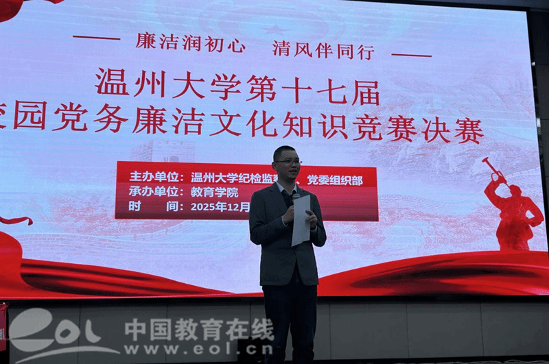 他高度评价教育学院连续七年承办赛事的精心组织,并希望全体师生以竞赛为新起点,争当廉洁文化的传播者和践行者,共同厚植校园清廉土壤。