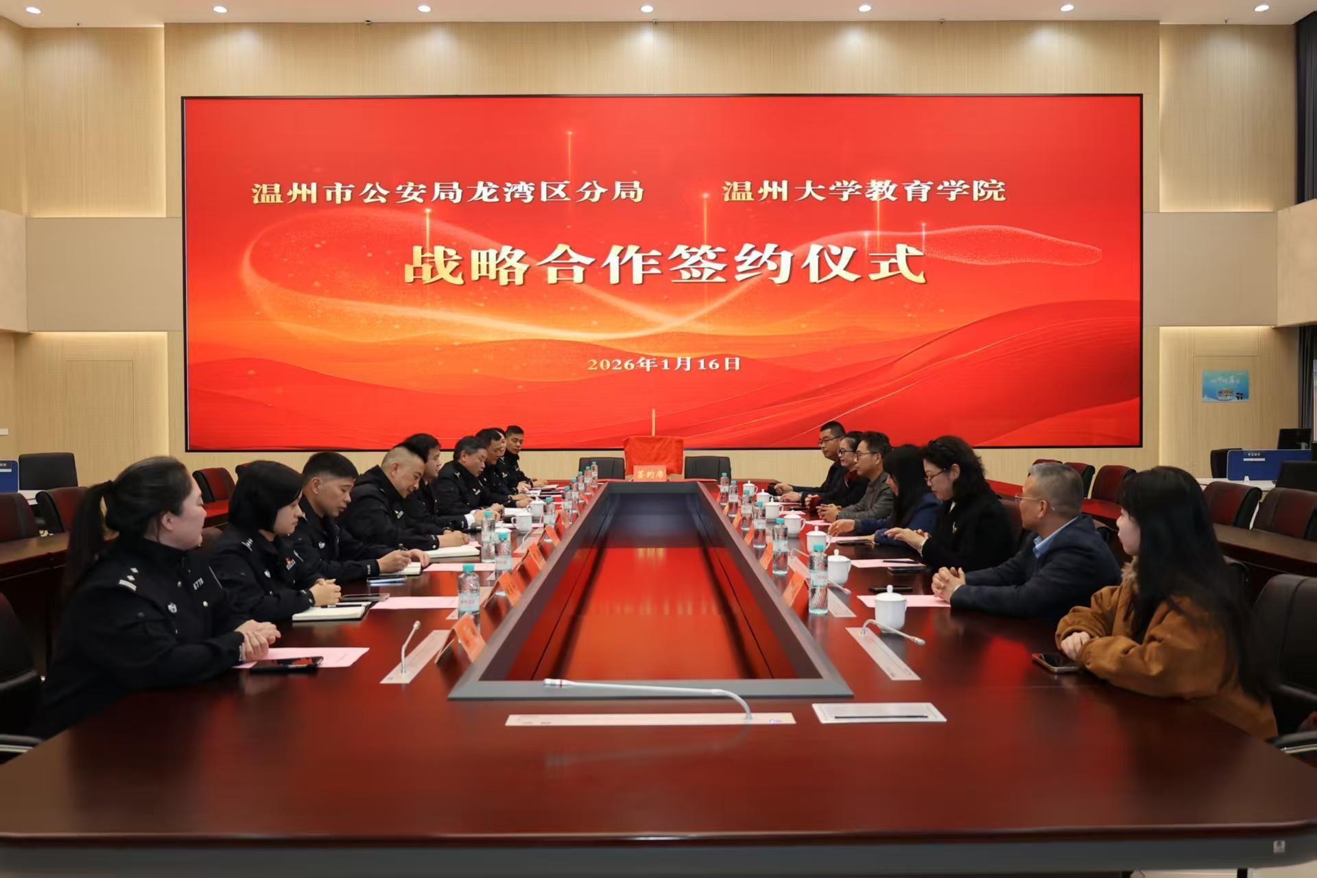 1月16日,太阳集团tyc234cc教育学院与温州市公安局龙湾区分局战略合作框架协议签约仪式在龙湾区公安分局举行。