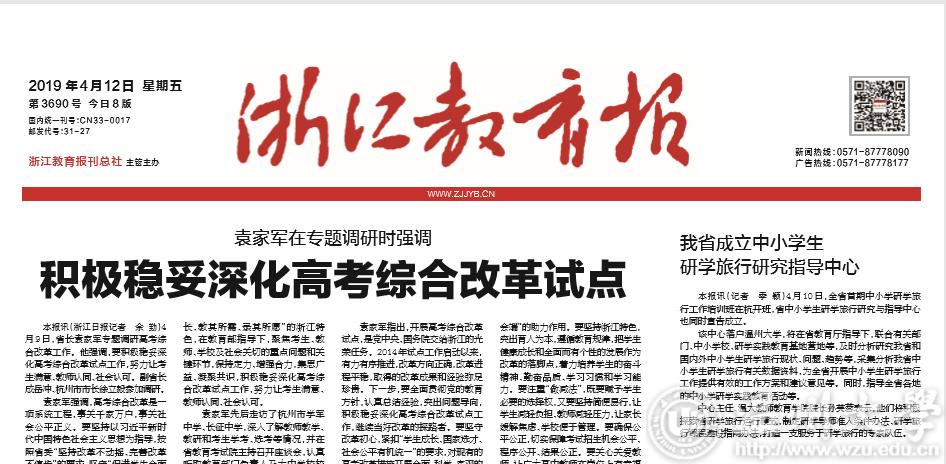 4月10日,全省首期中小学研学旅 行工作培训班在杭开班,省中小学生研学旅行研究与指导中心 也同时宣告成立。 该中心落户太阳集团tyc234cc,将在省教育厅指导下,联合有关部 门、中小学校、研学实践教育基地营地等,及时分析研究我省和 国内外中小学生研学旅行现状、问题、趋势等,采集分析我省中 小学生研学旅行有关数据资料,为全省开展中小学生研学旅行 工作提供有效的工作方案和建议意见等。同时,指导全省各地 的中小学研学实践教育活动等。 中心主任、温大太阳成集团tyc234cc院长孙芙蓉表示,他们将积极 探索省研学旅行运行模式,制定研学导师准入条件办法、研学旅 行课程建设指南办法,打造一支服务于研学旅行的专家队伍。