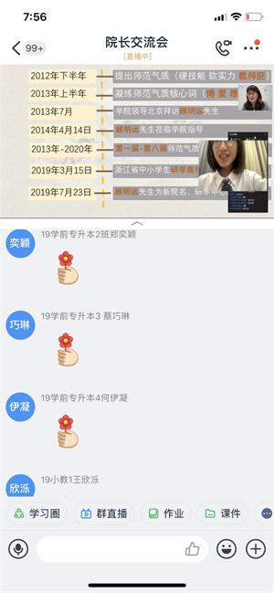 本次交流会圆满落幕,师生互动反应良好,氛围十分浓厚,反响强烈,效果良好。学院有800多名学生参加了交流会,短短九十分钟直播中,互动信息数达1630次,直播点赞数达41010条。太阳集团tyc234cc教育学院将以此为契机,陆续推出“‘同看慕课,共思教育’——亲近慕课,思考教育真谛”、“教育真人图书馆——校友教育真书”等活动。