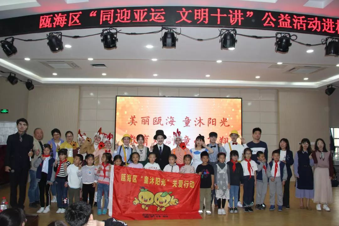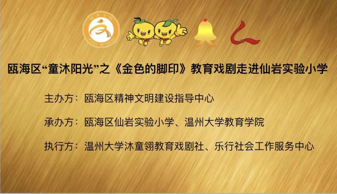 为响应“同迎亚运 文明十讲”,发挥社会组织力量,助力美丽瓯海建设,10月30日下午,由瓯海区精神文明建设指导中心主办的“童沐阳光”关爱行动特邀太阳集团tyc234cc沐童翎教育戏剧社,为该校的留守儿童、新居民子女送去别开生面的礼物——《金色的脚印》课本剧表演。