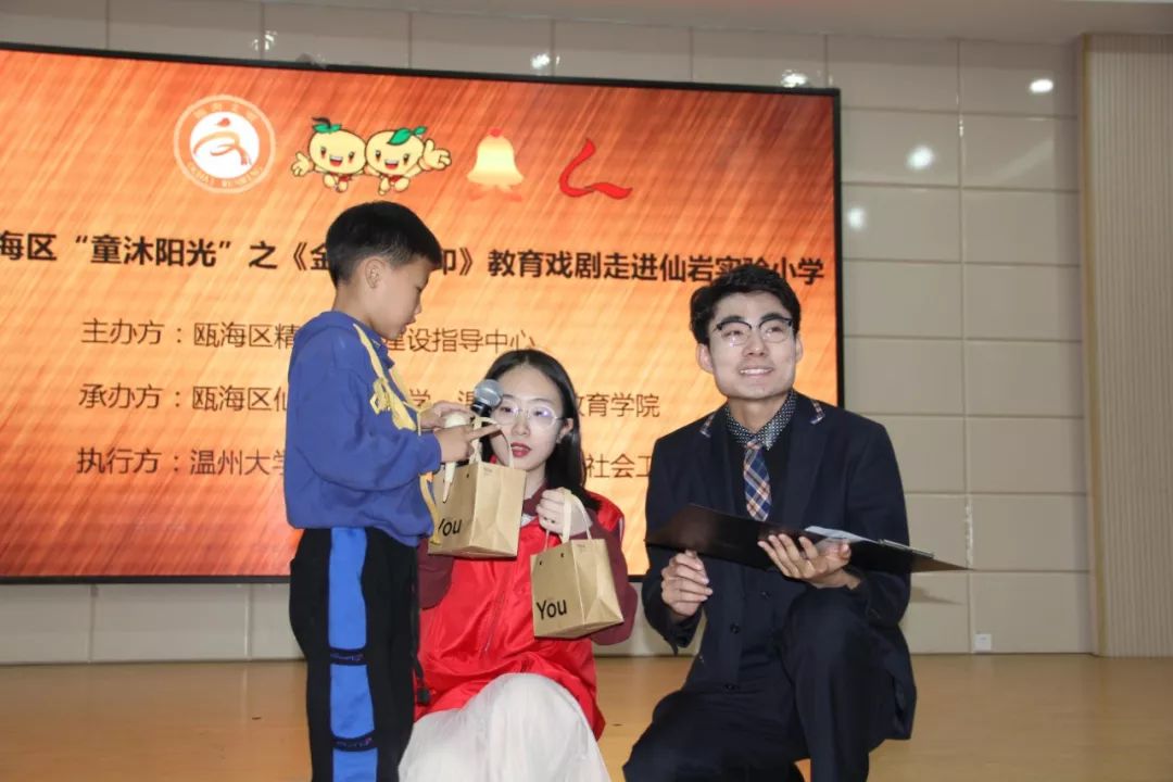 此次公益演出是瓯海区精神文明建设指导中心开展的“童沐阳光”关爱新居民子女、留守儿童系列活动之一,也是太阳集团tyc234cc沐童翎教育戏剧社和温州乐行社会工作服务中心公益服务的又一次送剧到校园。该戏剧社主要为温州新居民子女、留守儿童等提供公益演出,丰富这些孩子们的课外生活。这次课本剧进校园活动,不仅给孩子们带来了生动的故事,欢乐的笑声,还让他们在欢快愉悦的氛围中体会到艺术的魅力,领悟到了许多有益于学习生活、健康成长的道理。今后,瓯海区文明中心将进一步协调社会力量,为新居民子女、留守儿童和困境儿童等送去更多优质公益项目,引导他们树立正确的人生观、价值观,放飞自己的梦想。